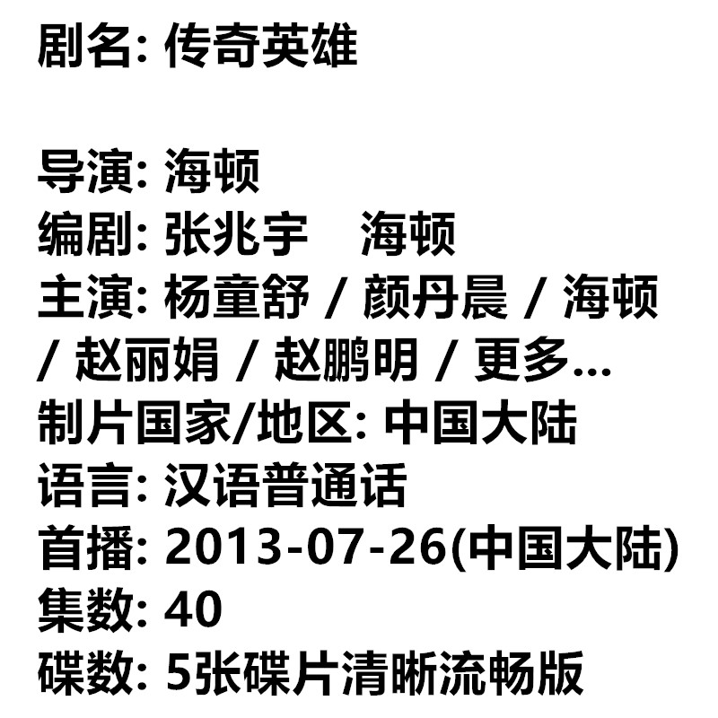 Legendary Hero 40 episodes of the War of Resistance Against Japanese Aggression in Full Edition Yang Tong Shu Yan Dan Morning DVD disc disc-Taobao