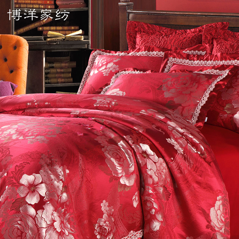 (President's special batch) Boocean home textile jacquard wedding ceremony Four pieces of bed goods wedding wedding wedding ceremony Four pieces of new wedding red-Taobao