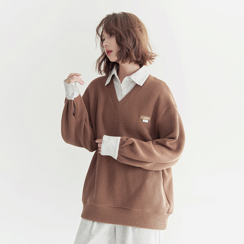 Wan with gravitational museum shirt collar fake two-seater women's spring and autumn models 2023 new design sense loose blouses-Taobao