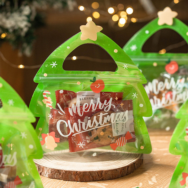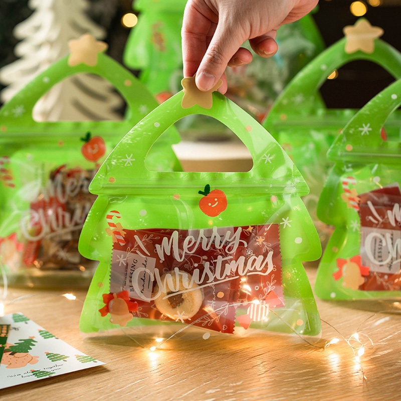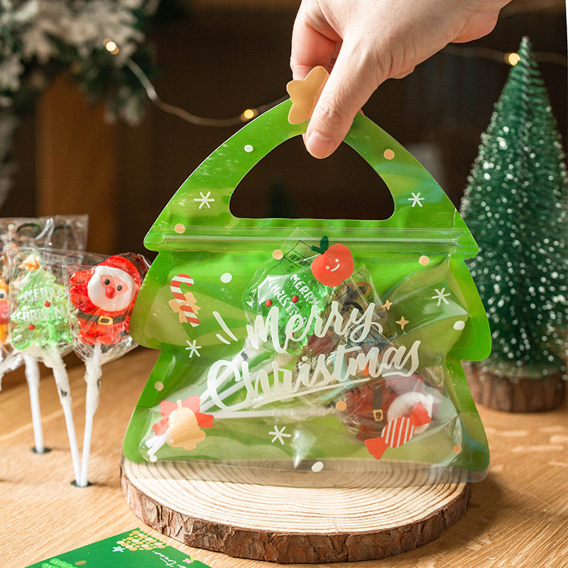 Christmas Tree Seal Bag 25 Solid Christmas Elk Seal Bag 25 Christmas Happy Carheaded Windows Self-supporting Bag 10 sets (suit 10 sets) Red paper bags Gold Tree around the bell Don't pin