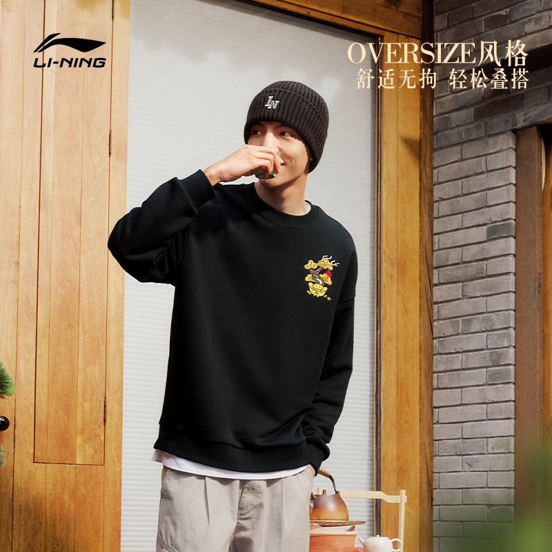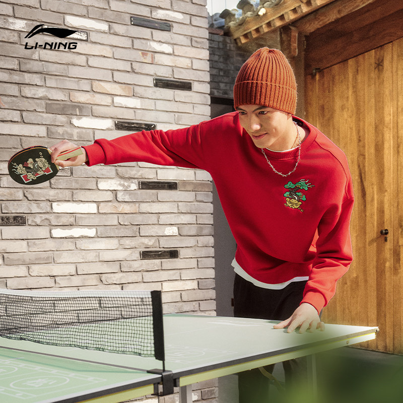 Li Ning Wanevents Qingsong New Year's clothing men and women in the same section This life of the year Red hooded sweatshirt round collar loose lovers' sweatshirt-Taobao