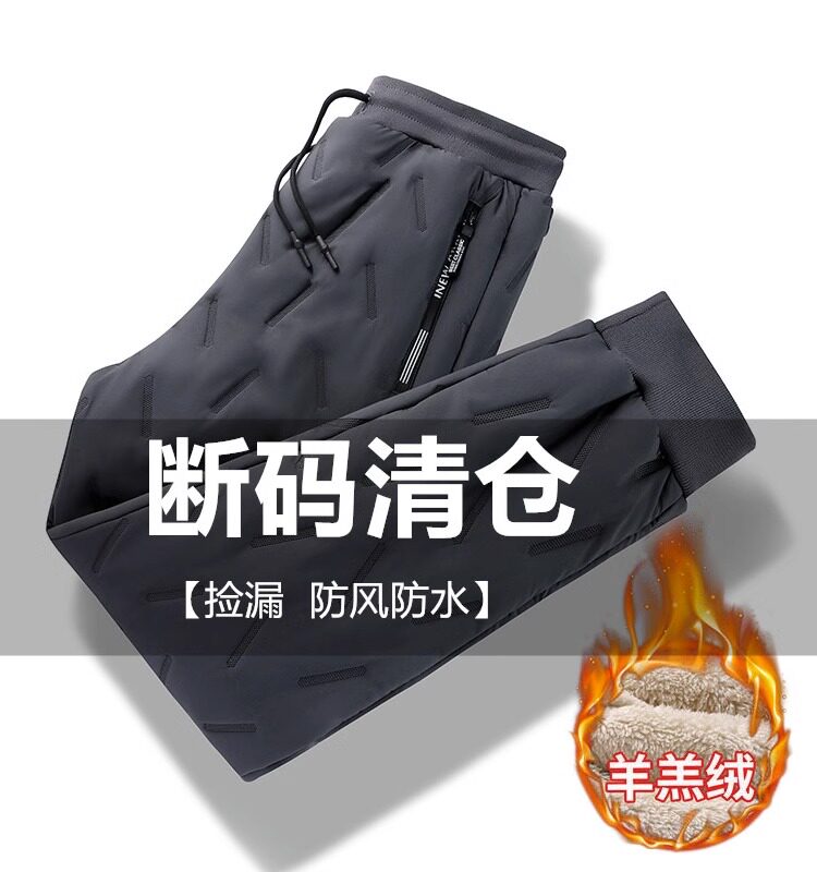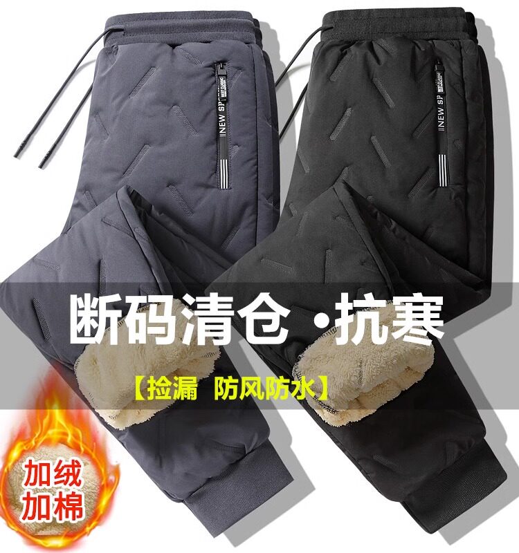 Woodpecker winter goat suede male thicken plus suede windproof, waterproof and warm-proof, old men's down cotton pants-Taobao