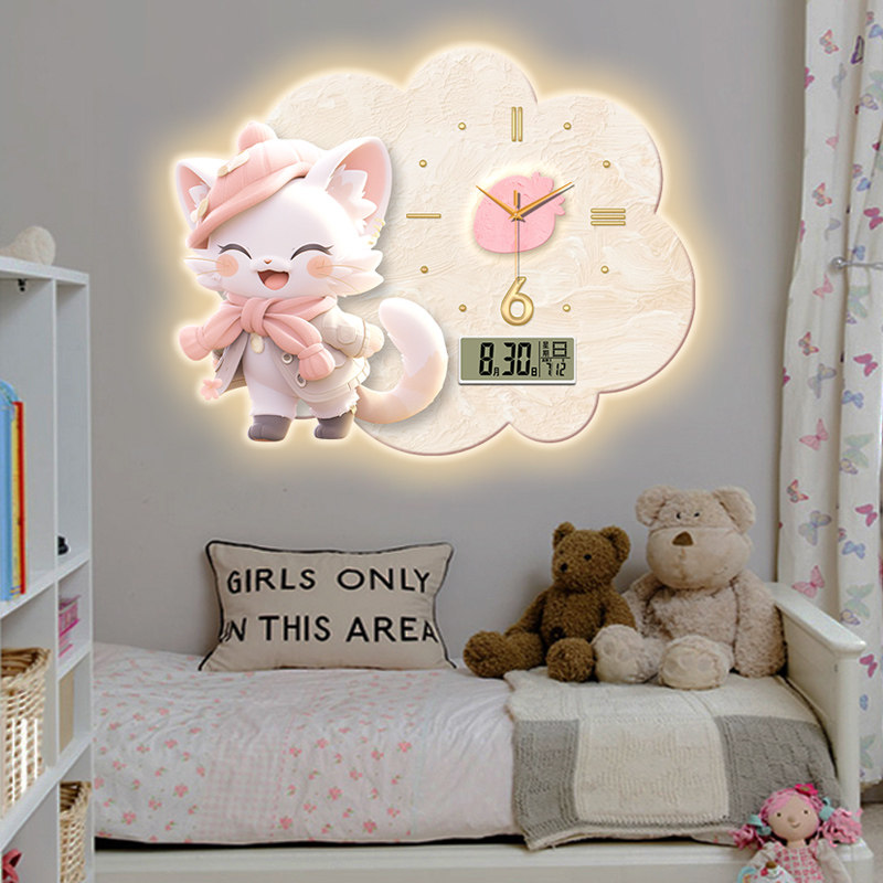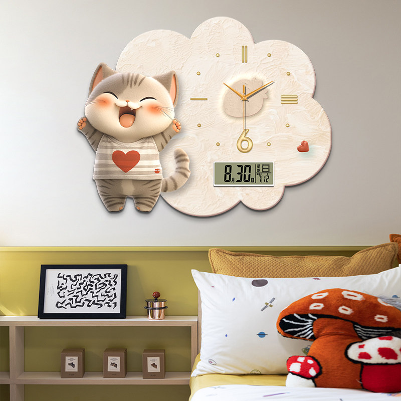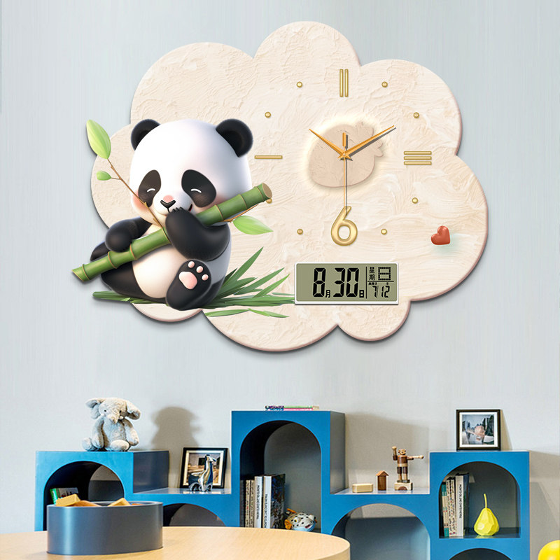 Cream Wind Panda Creativity Hanging clock Wanyearly calendar Electronic clocks Living room Restaurant Children Cartoon Network Red hanging Wall Clock-Taobao