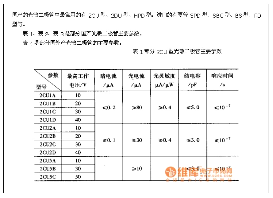 Homegrown silicon photosensitive 2CU2B 2CU2B 2CU2C 2DU1 2DU1 voltage 20 20 30 50v