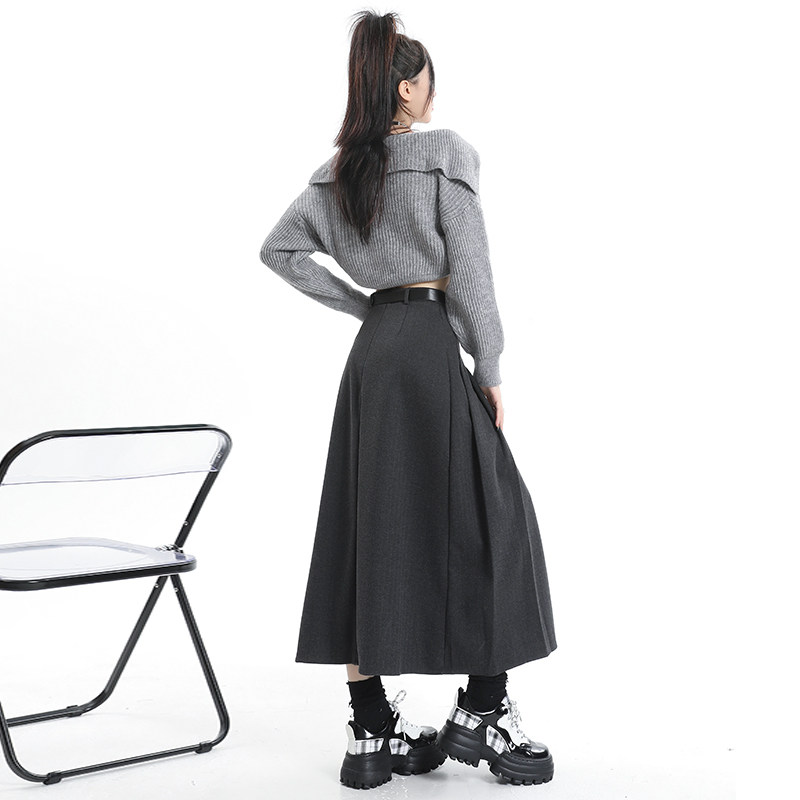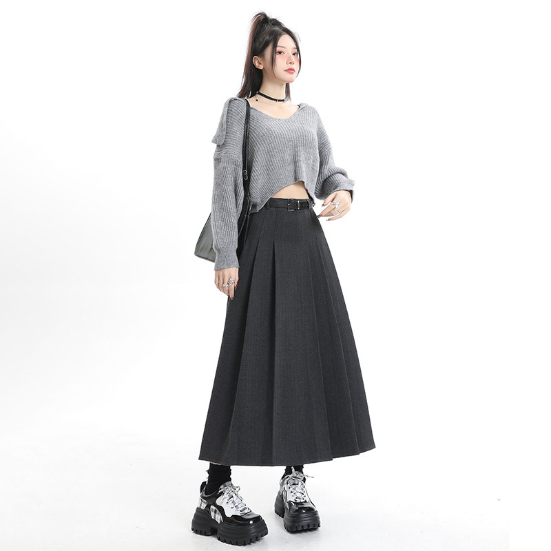 KRO grey hair half body dress lady autumn winter new thickened high waist shade A character umbrella skirt with long centenfold skirt-Taobao