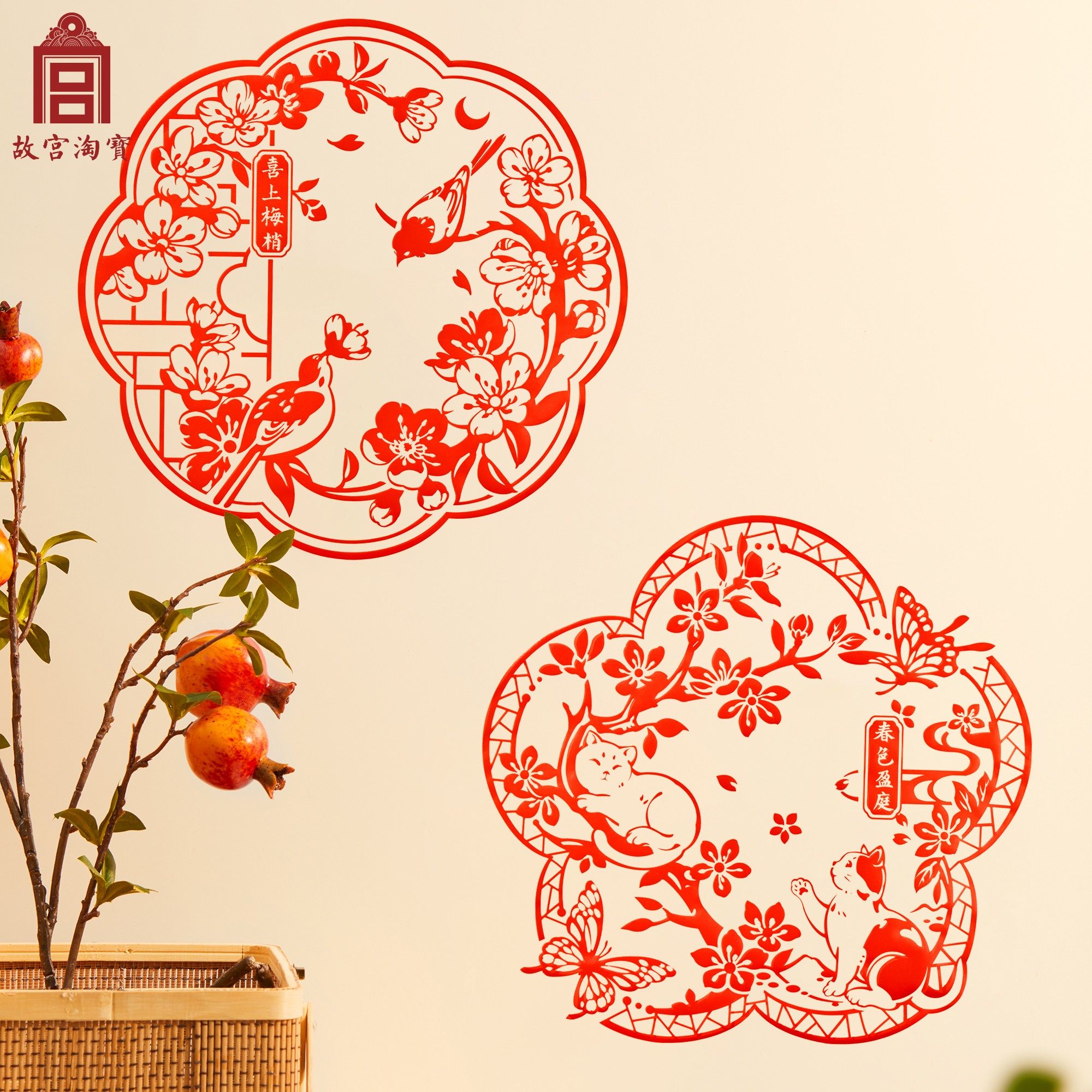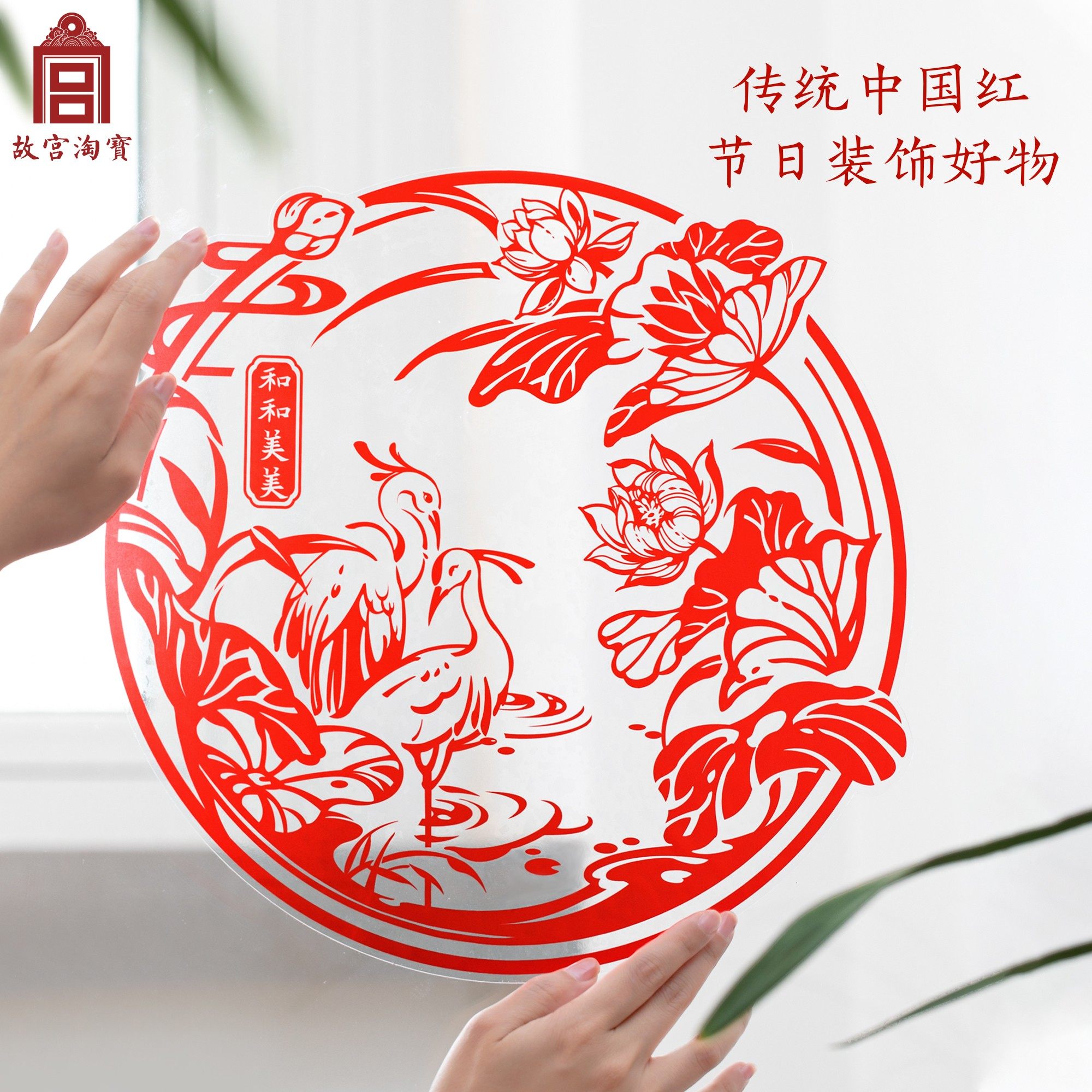 The Forbidden City's Taobao Festive Air electrostatic sticker 2024 Longyear Window Flower New Year's New Year Spring Festival Decorative Fu Character Sticker-Taobao