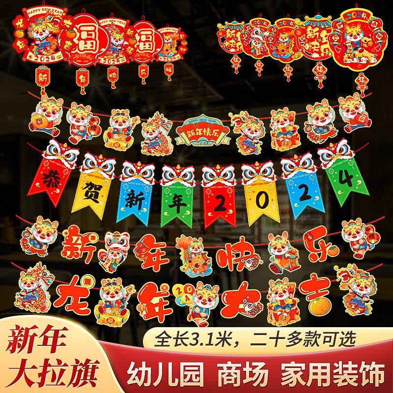 New Year decorations La flowers hanging flags Spring Festival Windows Door Heads Pull Flags New Year Happy Hanging Flag Lanterns Fu Bags Fu Characters Pendant-Taobao