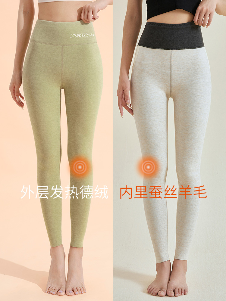Duvet Silk Wool Autumn Pants Woman Inside Wear Autumn Winter New Gush Fever High Waist Cotton Wool Warm Beating Bottom Line Pants-Taobao