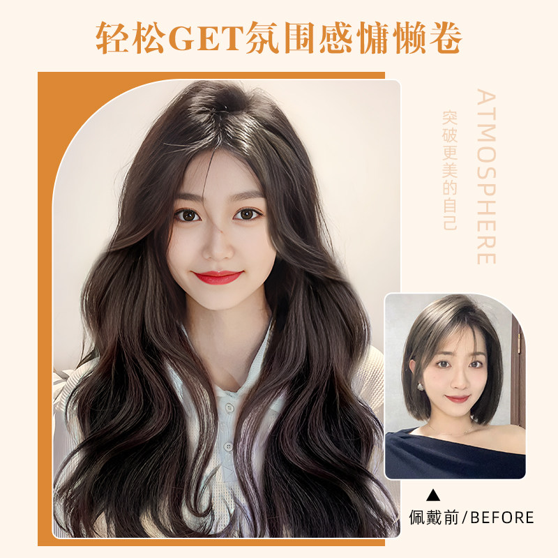 Wig Real Hair All-true Man Hair Long Hair Hair Full Headgear Emulated Hair Lace Haircut Hair Big Wave Wig Sleeve-Taobao