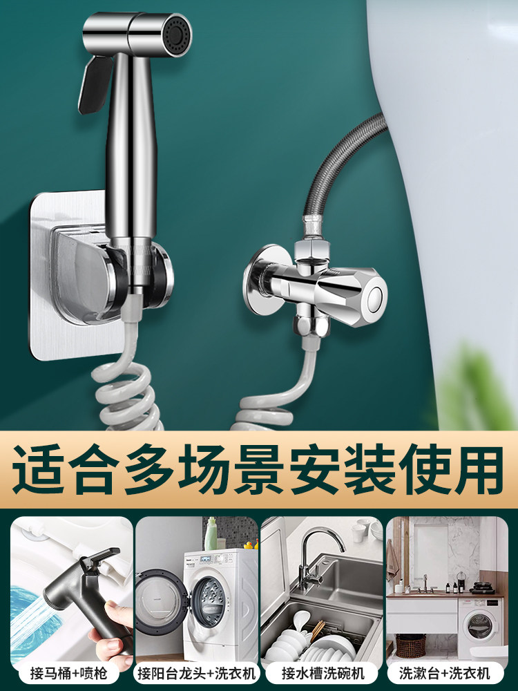 Cold water with double water (fine copper material) hot water with double water (fine copper material) versatile and double water (give 3-mark self-replacement) spray gun 2 0 m telescopic tube bracket double water