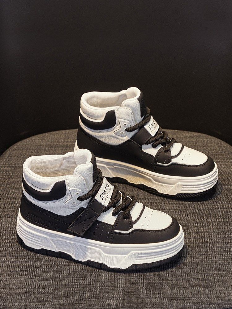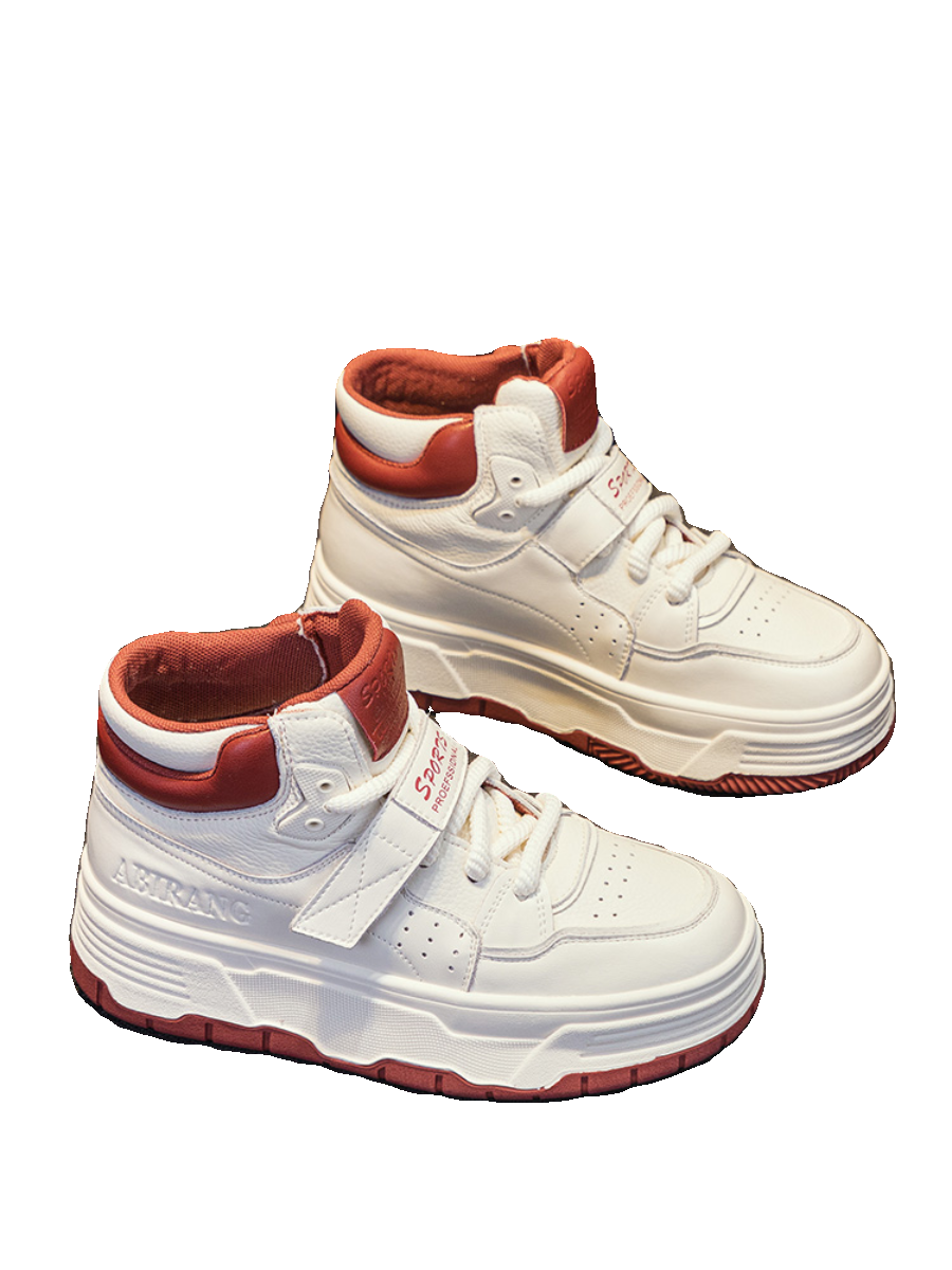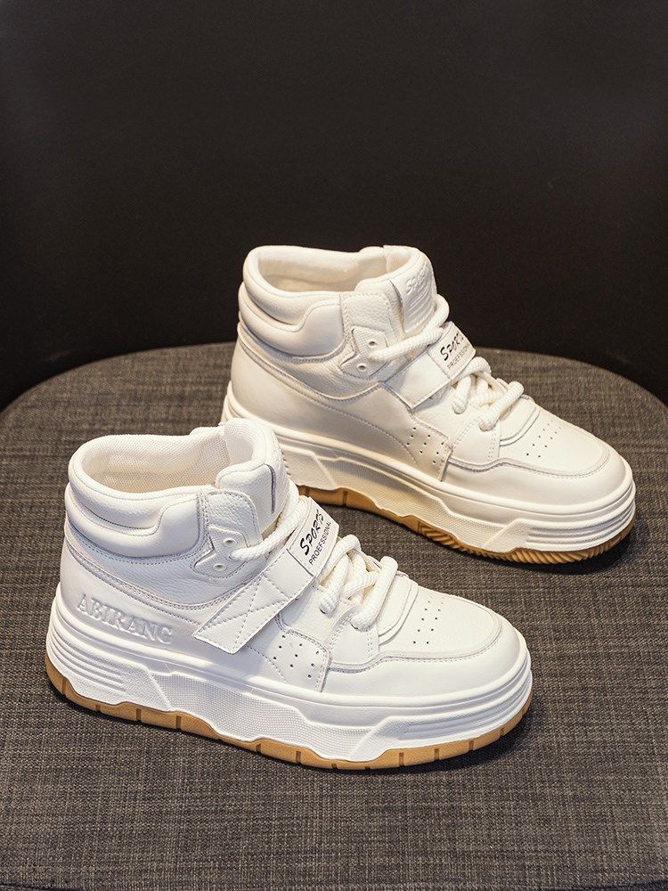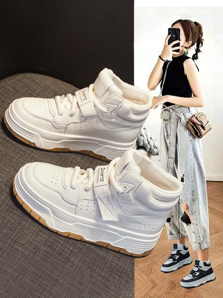 Hong Kong Special Cabinet Thick Bottom High Helps Small White Shoes Woman 2023 Autumn Winter Style Genuine Leather Gush Flat Bottom Casual Sports Cotton Shoes-Taobao