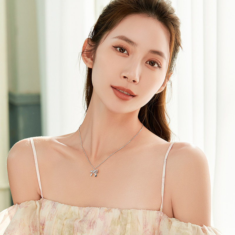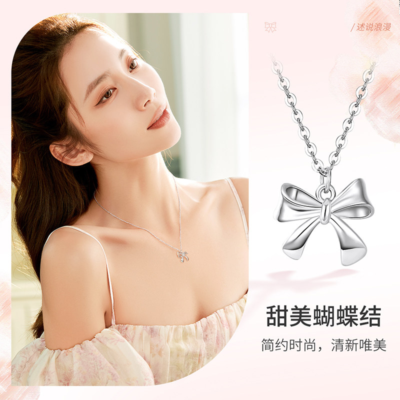 Dream Gold Garden Fugitive Princess Silver Sleeve Chain Girl Hearts Lock Bone Chain Butterfly Knot Silver Necklace Silver Jewelry Sending Girlfriend Gift-Taobao
