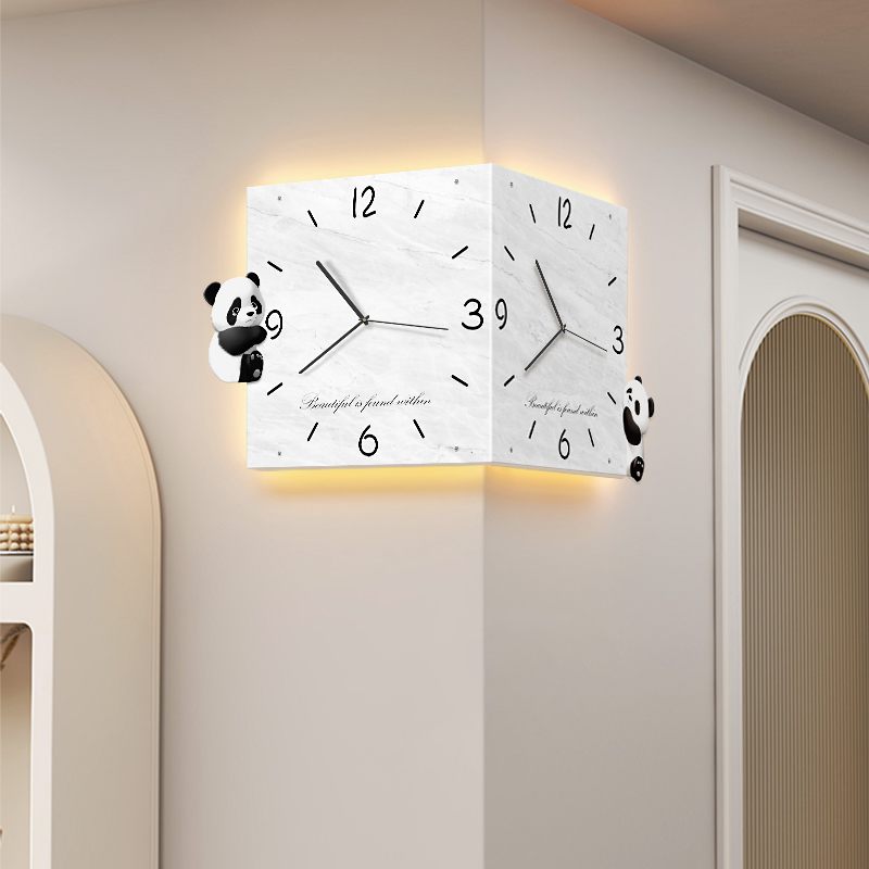 Cute Panda Living Room Corner Hanging Clock Home 2023 New Creative Bifacial Clock Corner Clock Hanging Wall Wall Lamp-Taobao