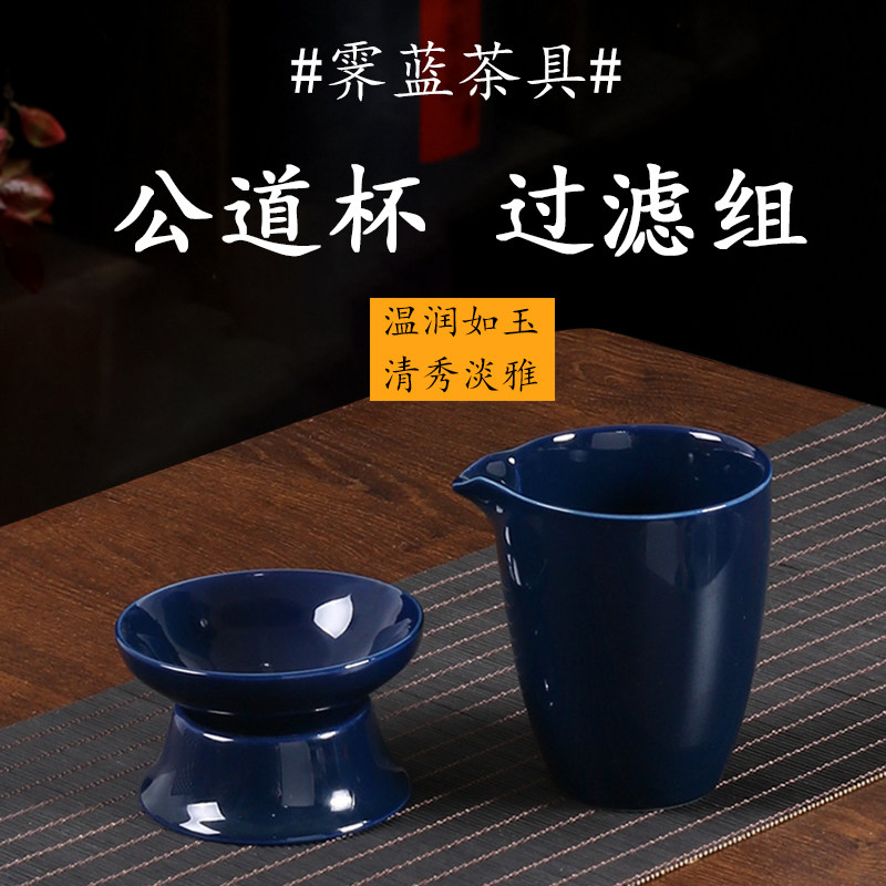 Blue Glazed Fair Cup Tea Leak Set Tea Leaf Tea Set Tea Leaf tea Set Ceramic Filter Group Tea Sea Stainless Steel Strainer-Taobao