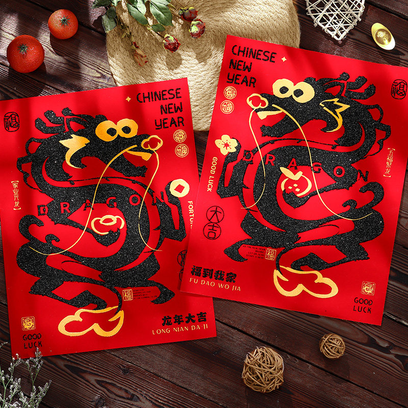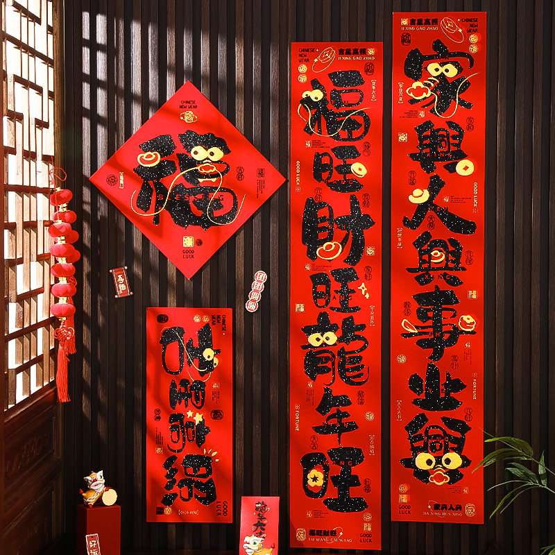 Couplets 2024 the new dragon year suede Spring couplets with the Lunar New Year Spring Festival Home Door Decoration-Taobao