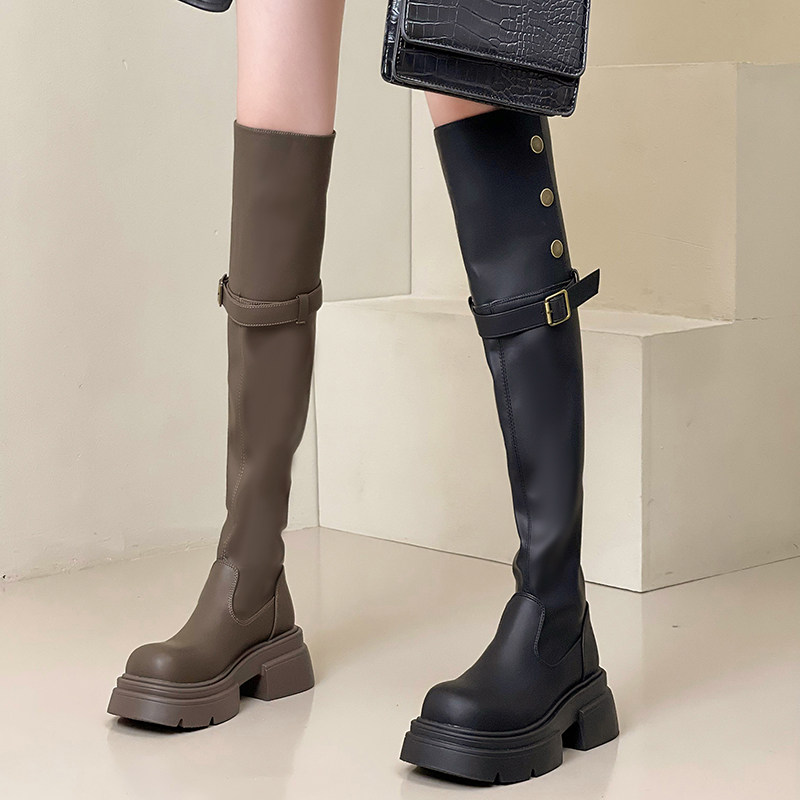 Fashion tribe Two wearing thick bottom long cylinders over knee boots children 2023 autumn and winter new coarse heel plus suede long boots fashion boots-Taobao
