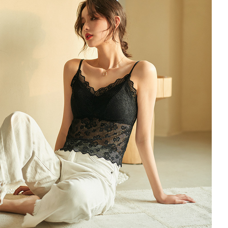 Lace Harness Girl Little Vest Beauty Back Mesh Red Sexy Inner Lap Wrap Chest With Chest Padded Undershirt Wrap Chest One Piece-Taobao