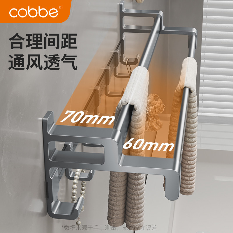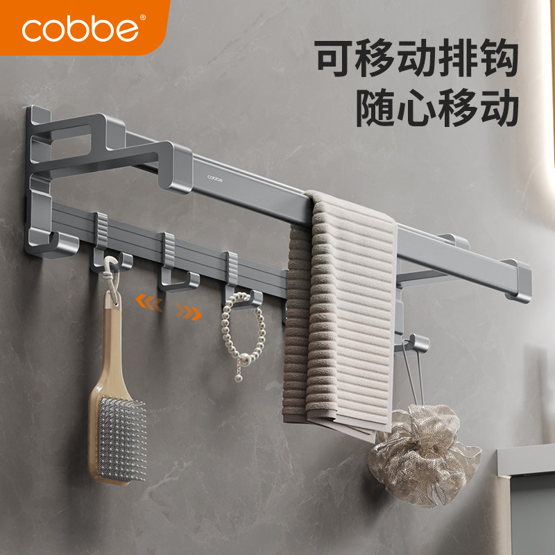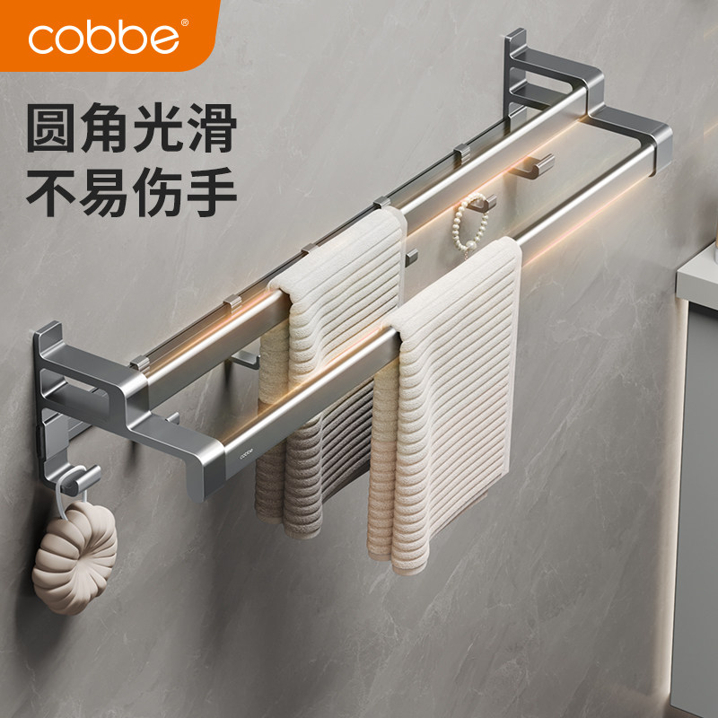 Cabbé Space Aluminum Wool Towel Rack Twin Rod Gun Ash With Hook Bathroom Towel Rod Anodized Toilet Placing Shelf-Taobao