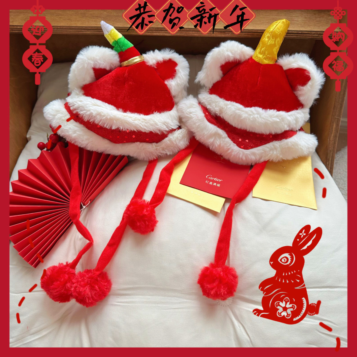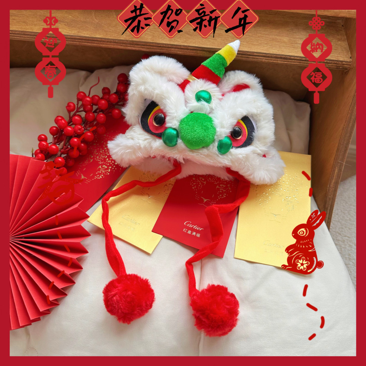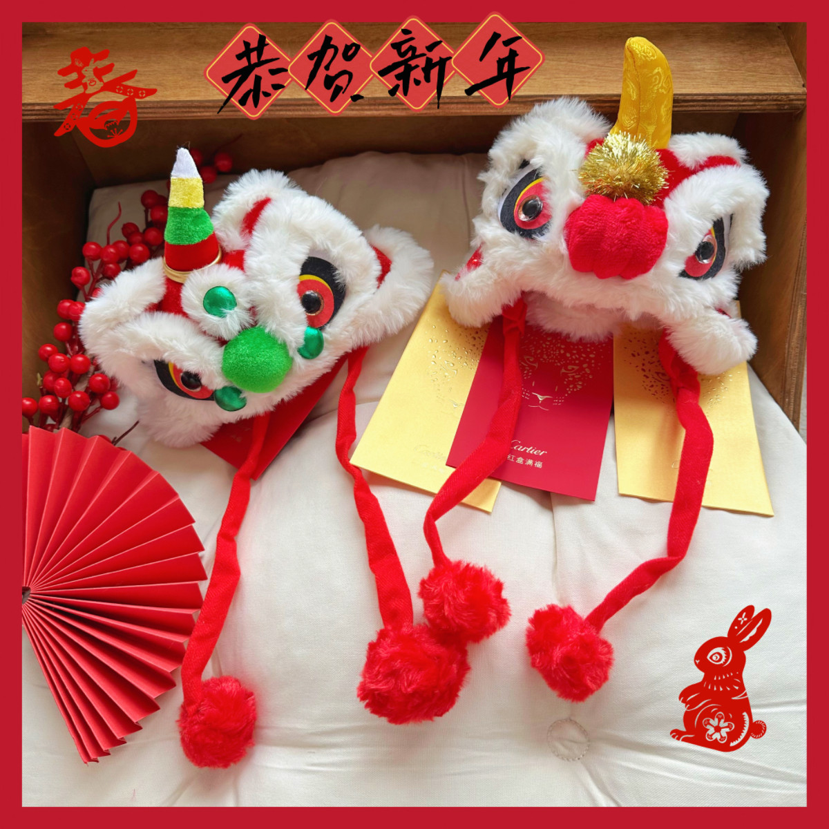 New Year Dance Lion hat-Red New Year Dance Lion hat-Green Magic Sticker Lion Cap all sizes (4-16 catty) New Year's Little Red Hat all sizes (Adult)