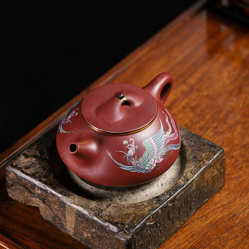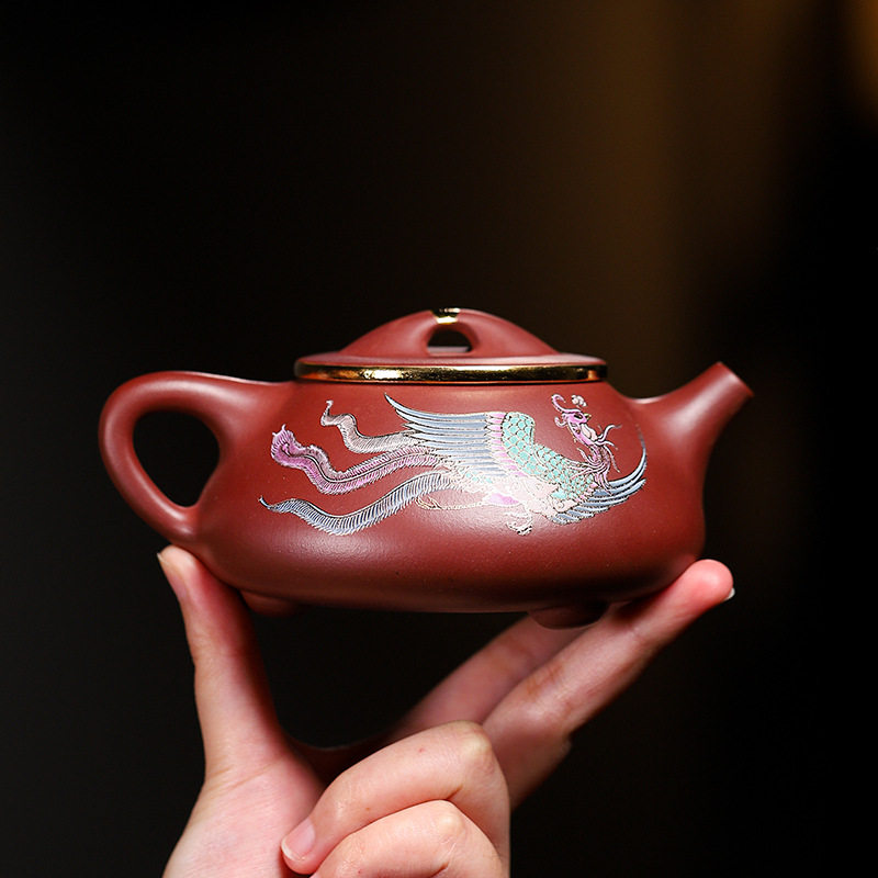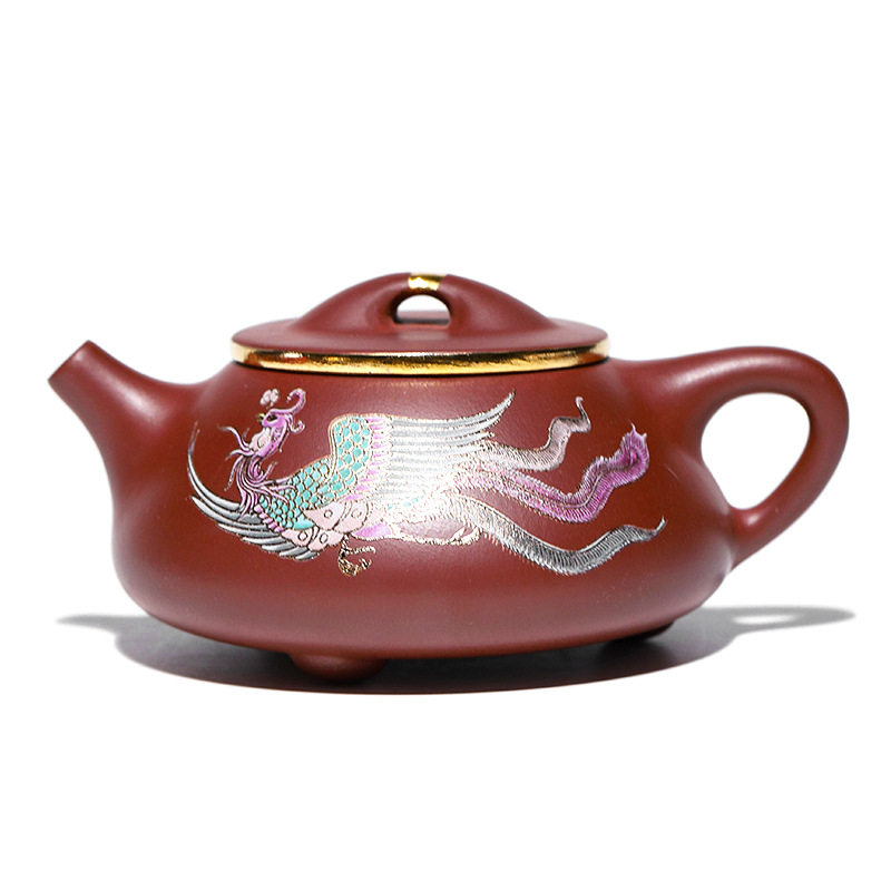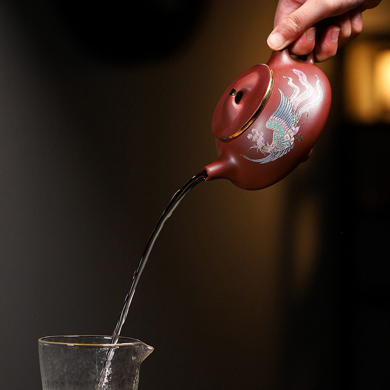 Place of origin Straight Hair Purple Sand Pot Yixing Dragon Blood Sands Handmade sketching Depict Golden Phoenix in Ladle Pot-Taobao with Tweeter-Taobao