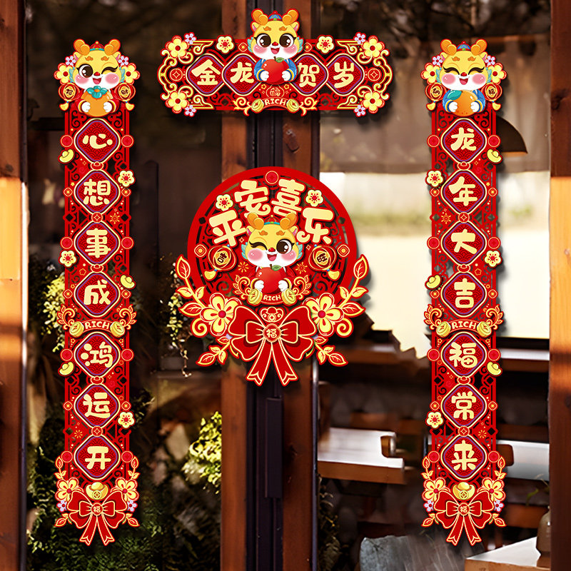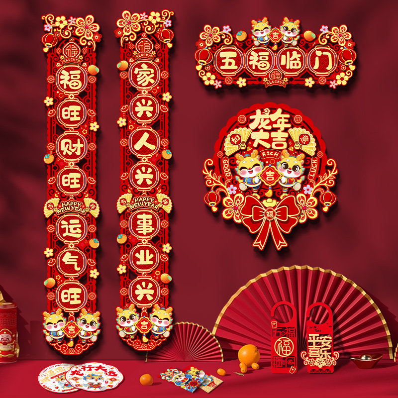 Couplets Magnetic Attraction 2024 New Dragon Year Spring Couplets Fu Characters Entrance Doors New Year Decoration Suit Pendant China Air Door Joint-Taobao