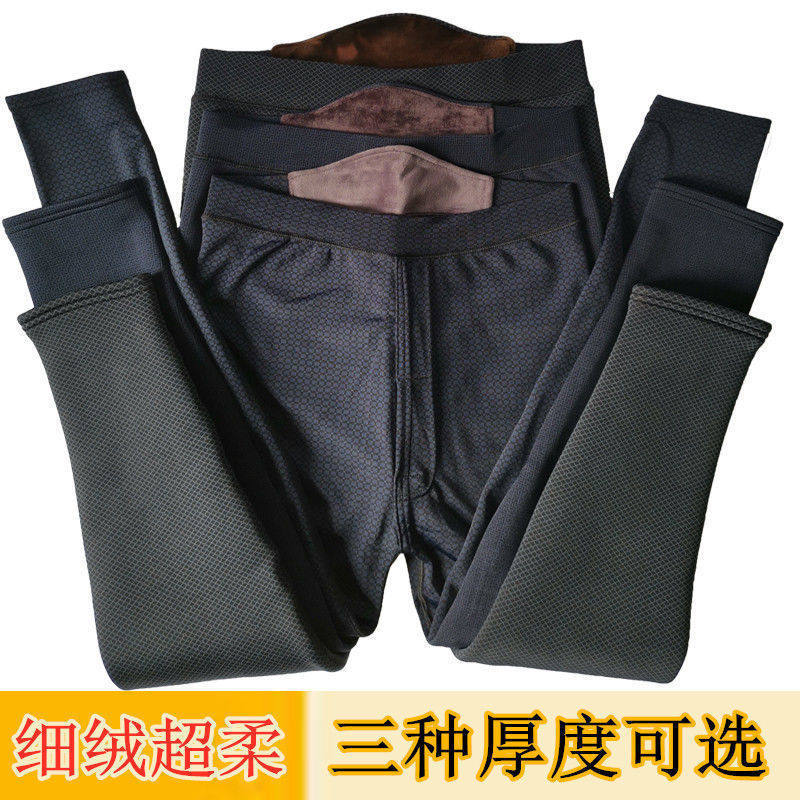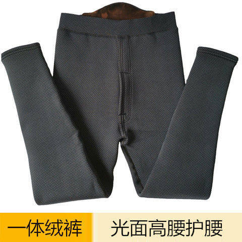 Autumn-winter men's warm pants plus fattening up glossy cotton pants with underpants slim fit pants with high waist and slim fit cotton wool trousers-Taobao