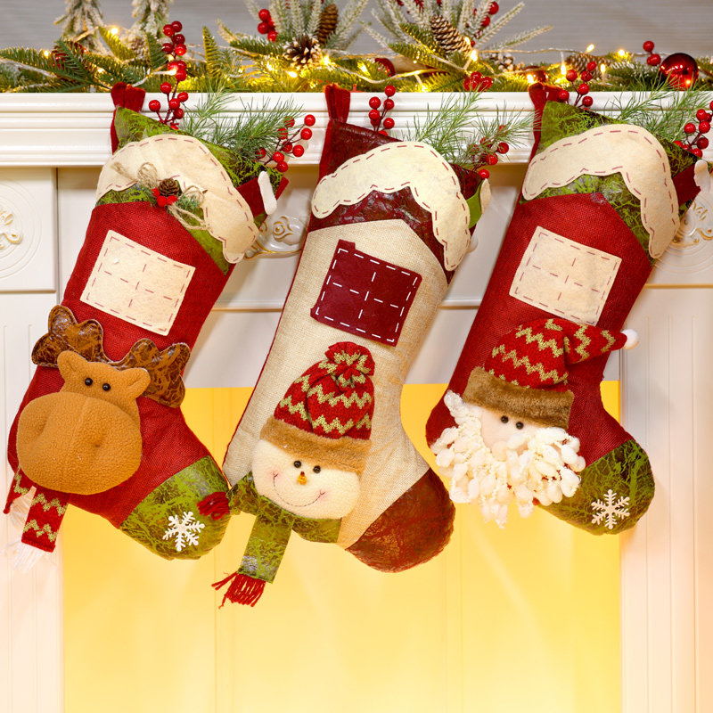 Christmas Socks Gift Bag Big Christmas decorations pendant Santa Socks Candy Bag Kindergarten Children-Taobao