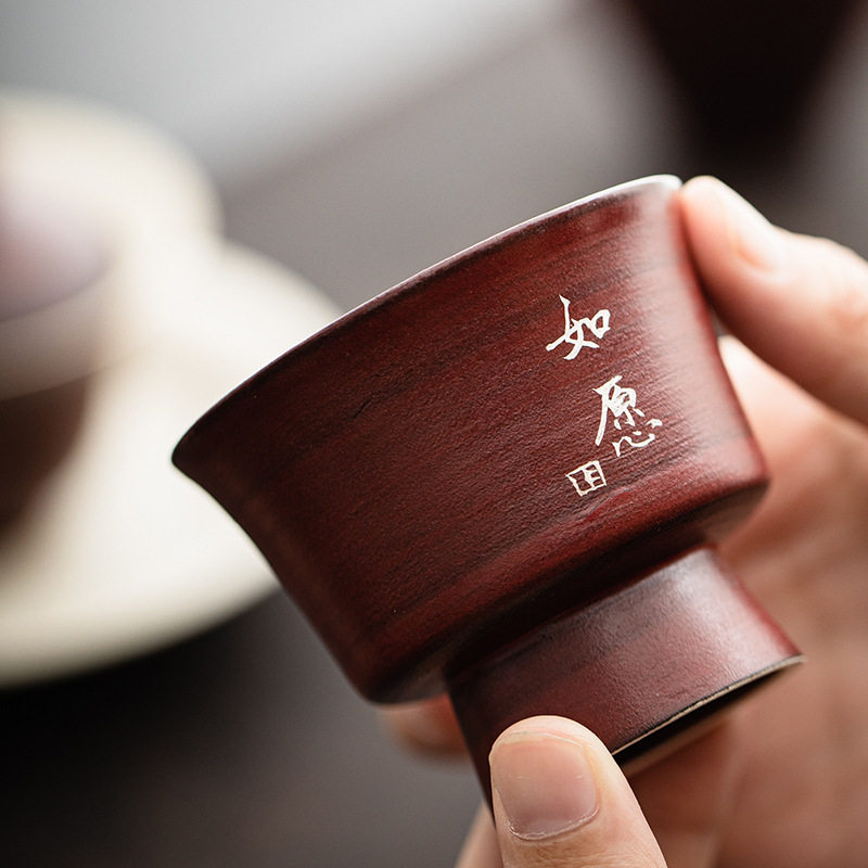 The Messie Silent Wind Master's Cup Day Style Powder Artisanal Coarse Pottery Tea Cup Hawthorn Red Household Tasting Cup Single Kung Fu-Taobao