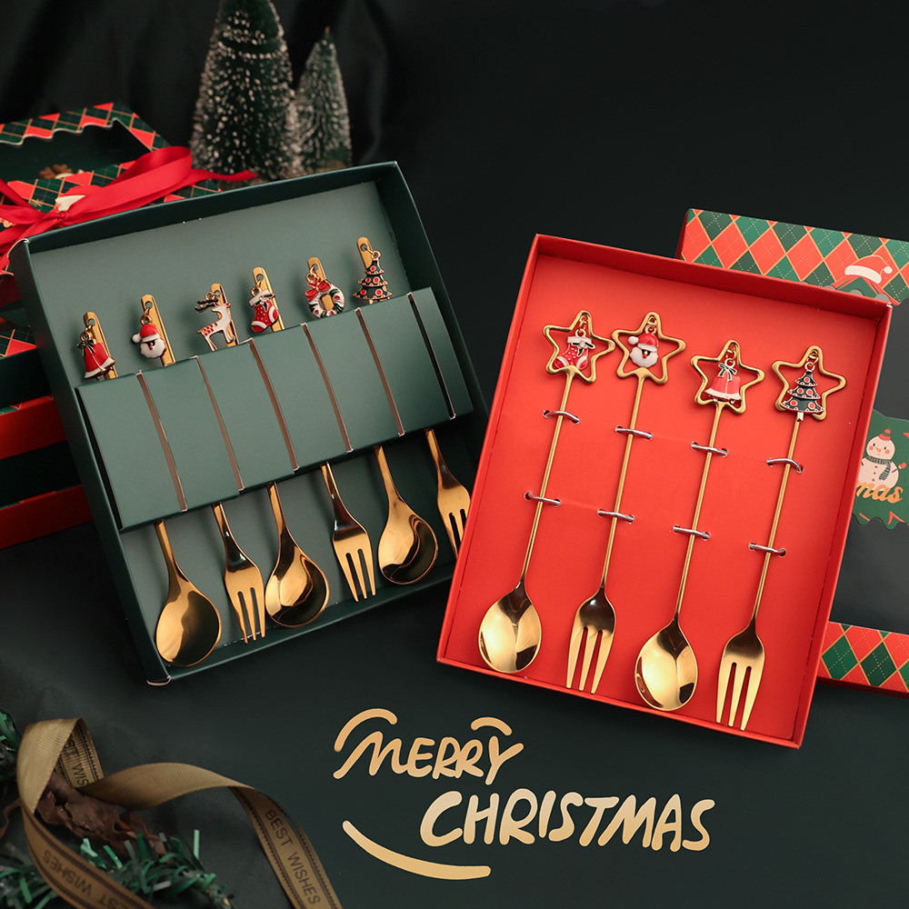 Christmas Gift Stainless Steel Coffee Stirring Spoon Fruit Fork Water Cup Spoon Christmas Day Gift Box Suit 3088-Taobao