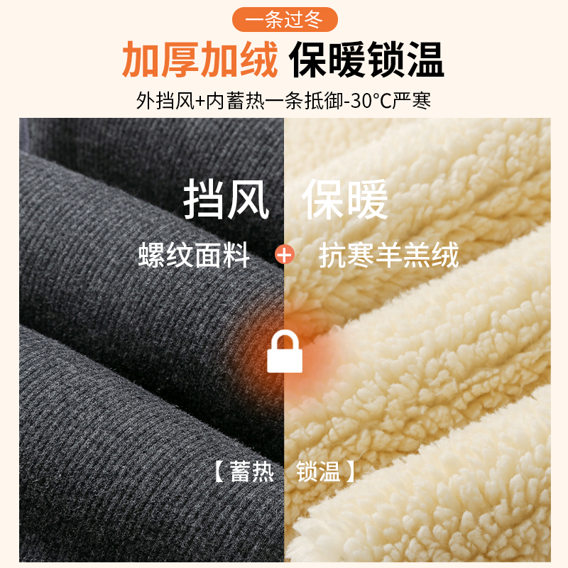 Extra-thick lamb fleece bottom pants woman outside wearing winter garnter thickened Northeastern warm pants cotton wool suede pants high waist display slim-Taobao