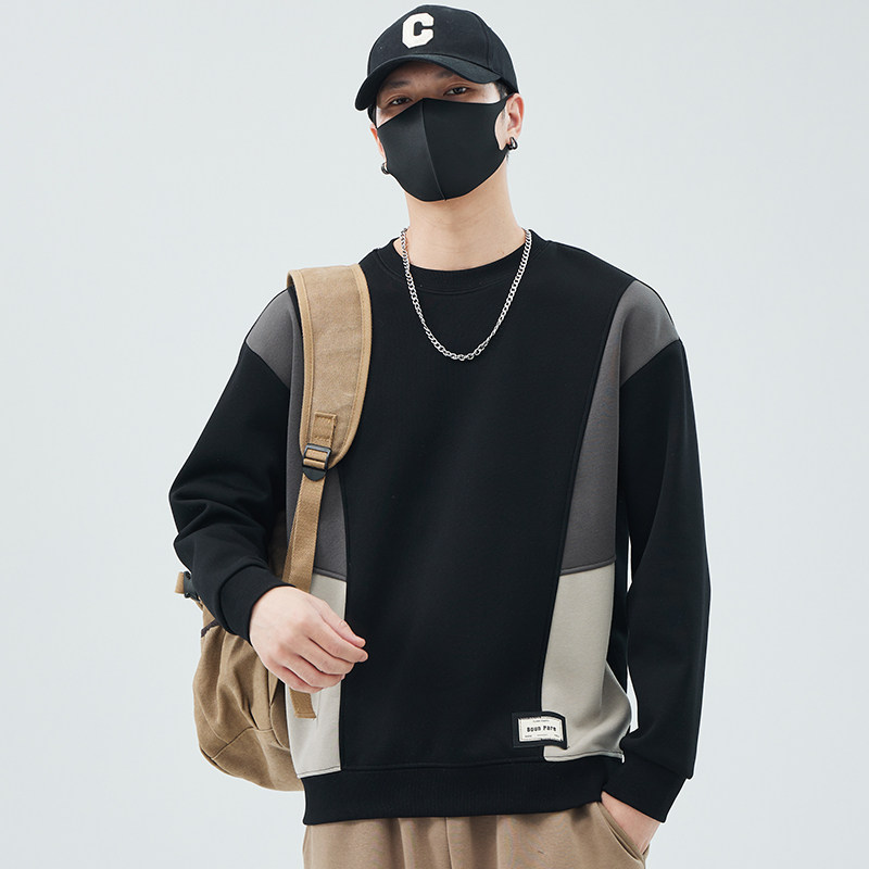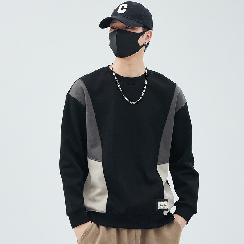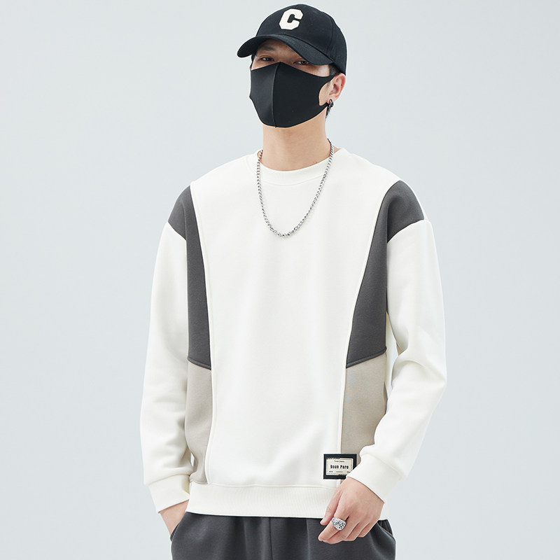 Collage plus suede thickened men's sweatshirt 2023 autumn winter new round collar loose men's fashion boarder blouses blouses-Taobao