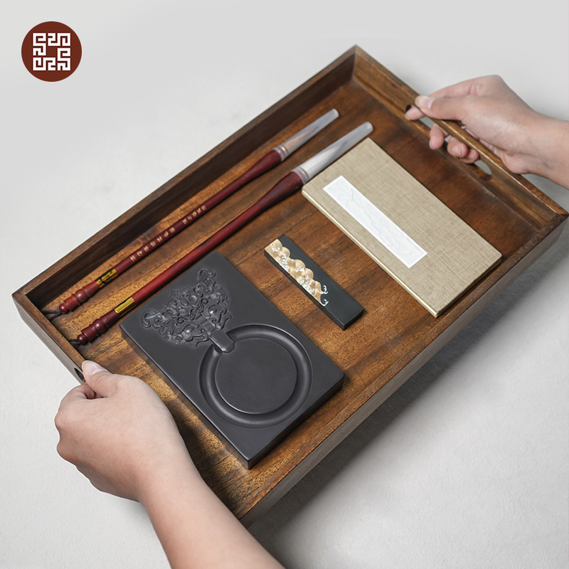 National Non-Heritage Easy Water Old Pit ink-stone Inkling Original Stone Vin House Four Treasure Tropoon Disc Suit Pen Ink Paper Inkstone Brush Calligraphy Painting Exclusive high-end Grinding Ink Inkstone Original Stone-Taobao