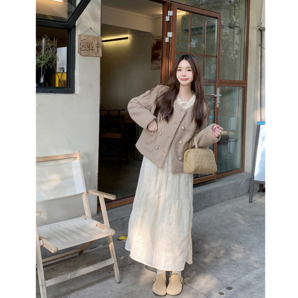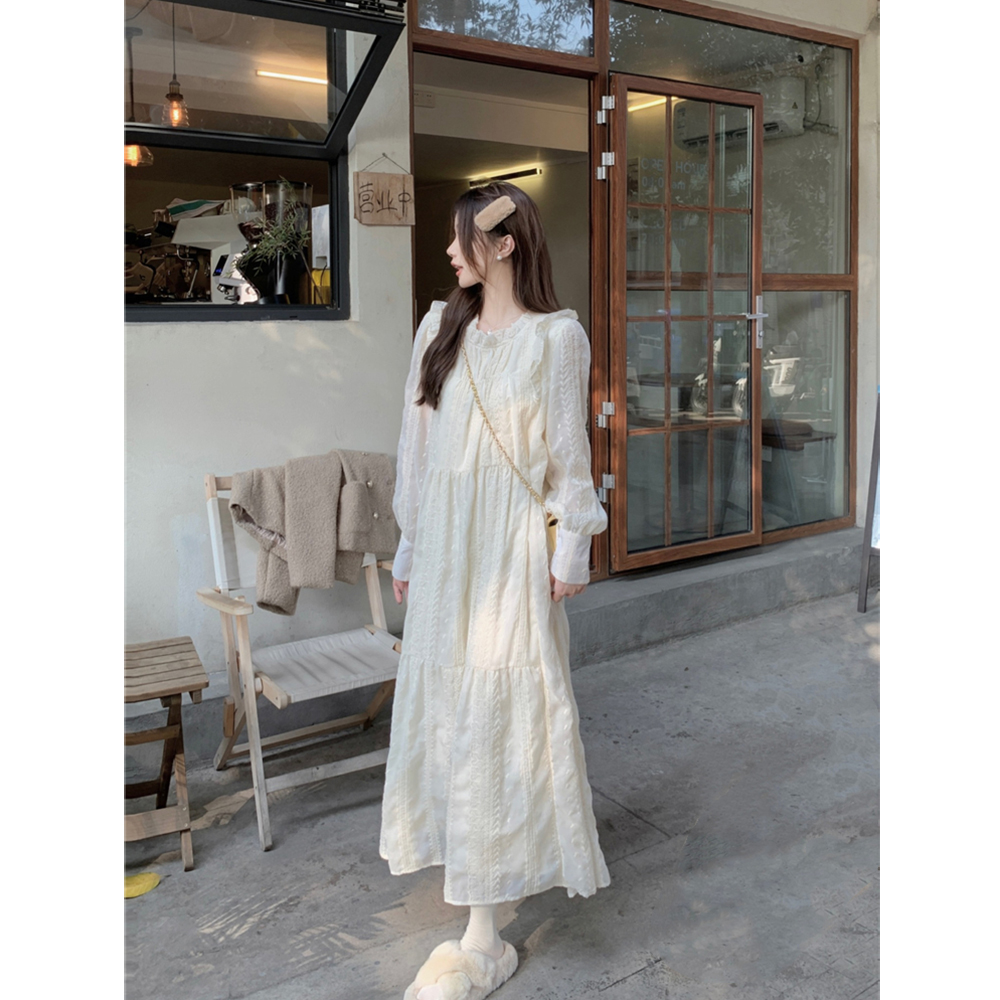 Gentle Wind Lace Silk Dress Dress Woman Dress Spring Autumn 2024 New very fairy gush thicken warm beating base long skirt-Taobao