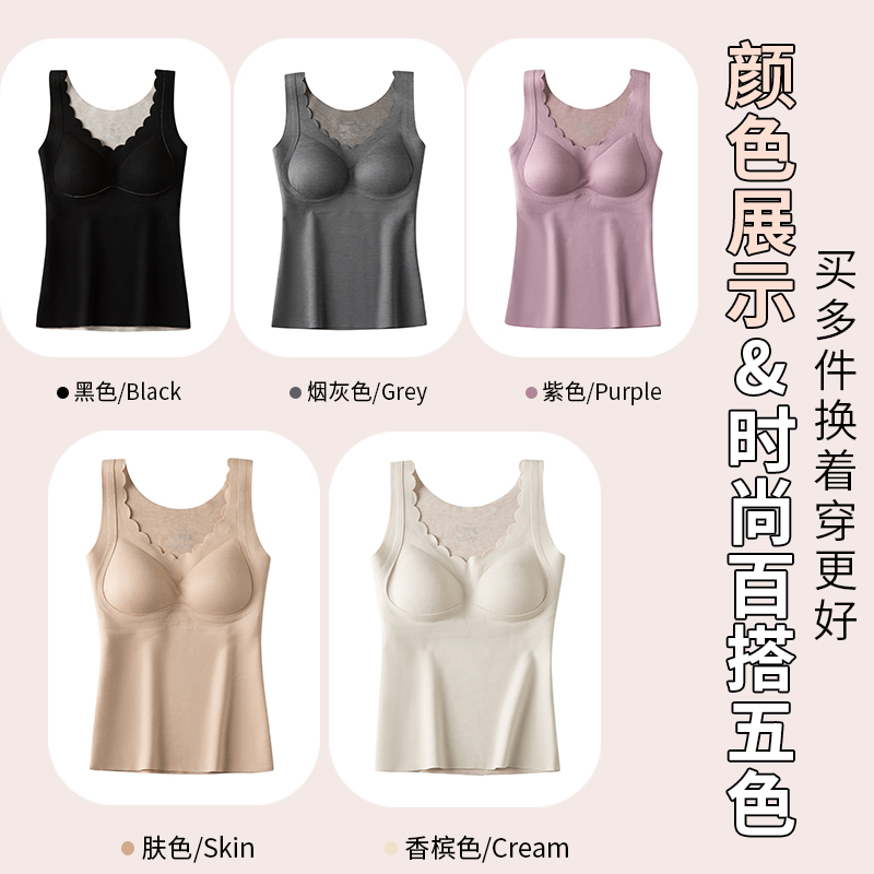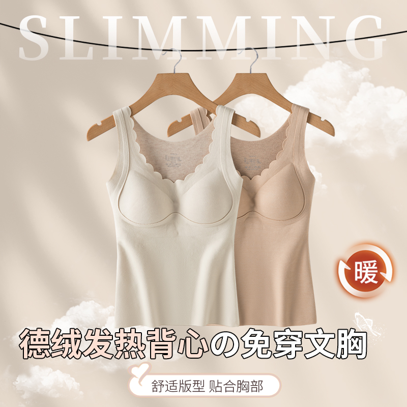 Duvet thermal underwear woman free wearing bra plus velvety heat free vest with chest cushion integrated autumn and winter muscle undercoat-Taobao