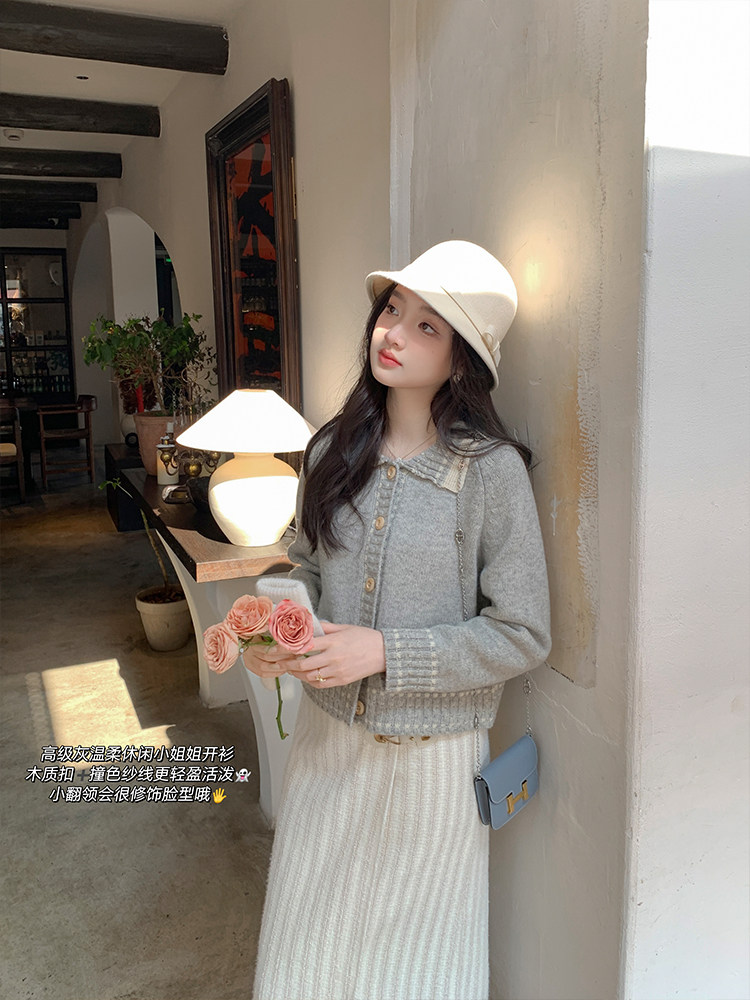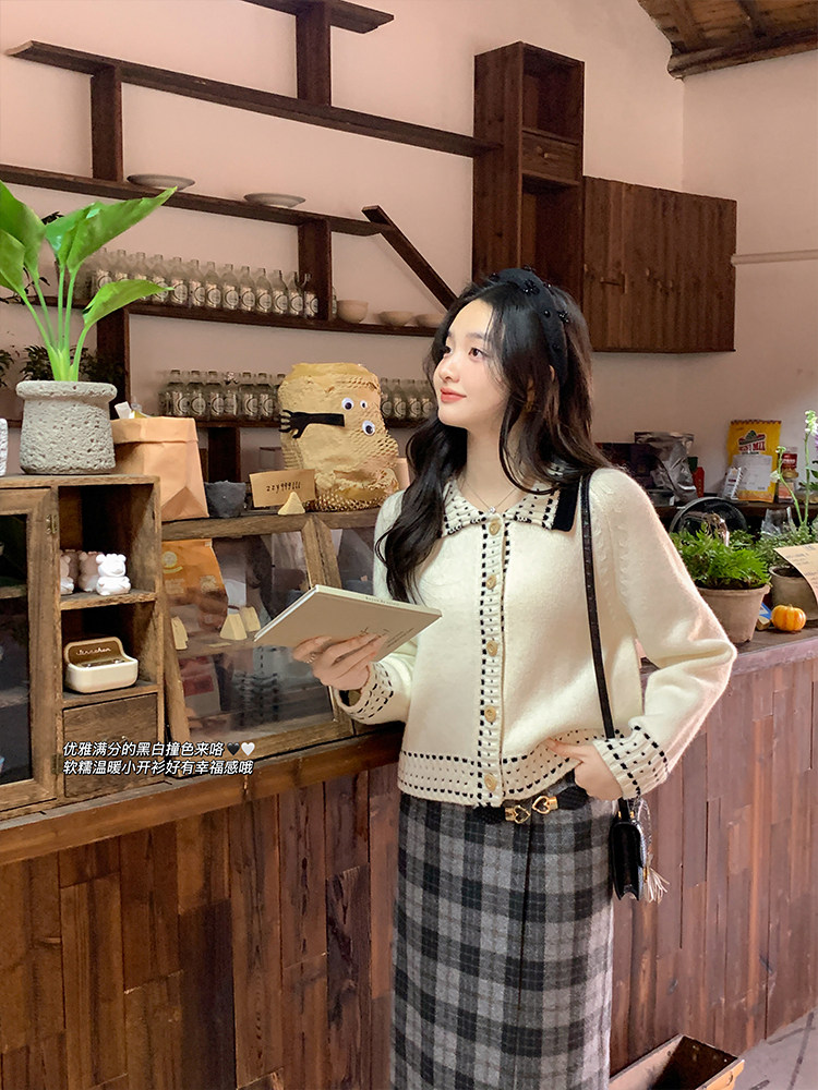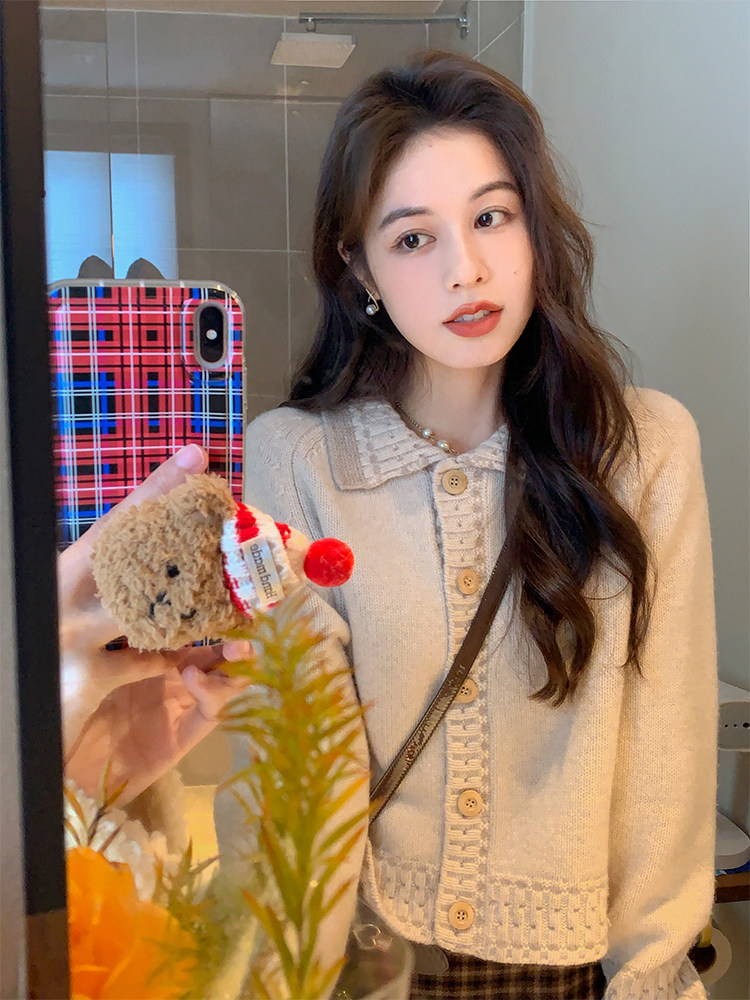Flowers Chestnut lady can be ruffled with a sweatshirt with a small fragrance, a collared knitwear and a small sublady autumn winter coat-Taobao