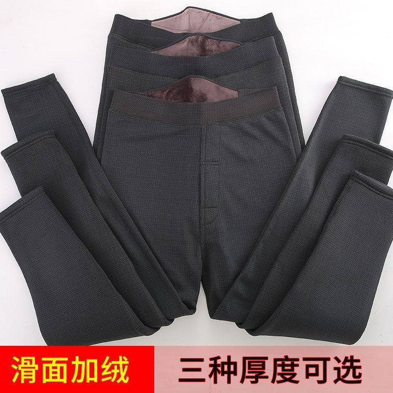 Men's warm pants slim fit with suede pants with high waist and cotton sweatpants plus fattening up glossy cotton pants for underpants autumn and winter-Taobao