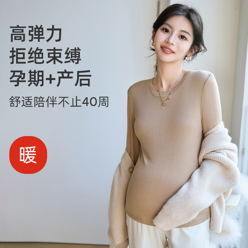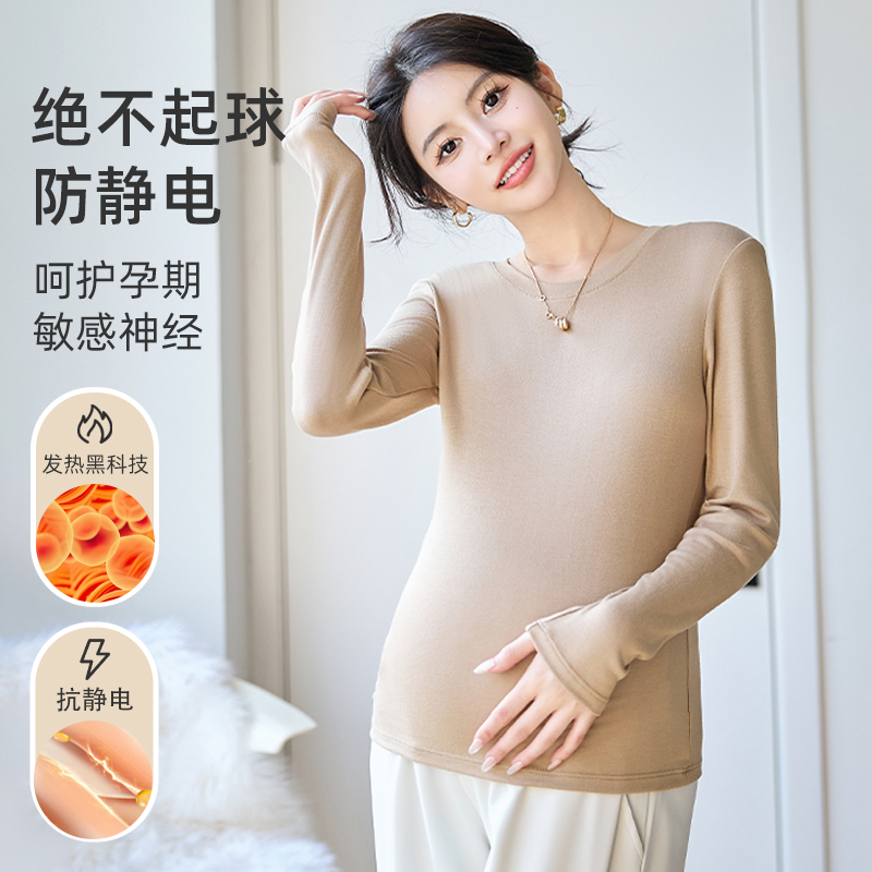 Pregnant woman hit undershirt autumn and winter warm Modale Big code Pregnancy Autumn Clothes Long Sleeves Inner lap Maternity Dress T-shirt-Taobao