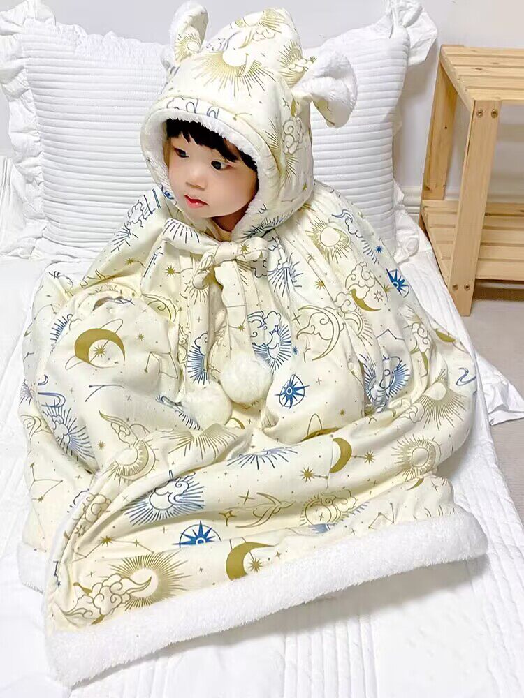 Retractable Hand Baby Cloak Autumn Winter Out Jacket Thickened Winter Child Cloister Baby Windproof Cuddle by Wind Shield-Taobao