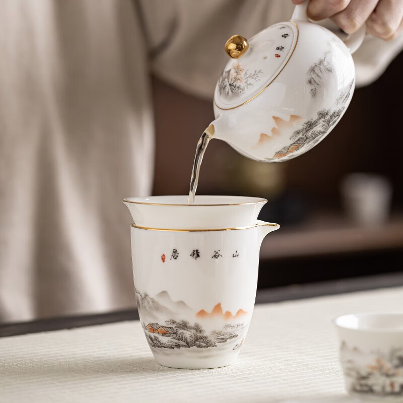 Gold Inlaid Jade Goat Fat Jade Kung Fu Tea Set Suit Light Extravagant And High-end Home Delivery Courtesy of China White Porcelain Lid Bowl Cup-Taobao
