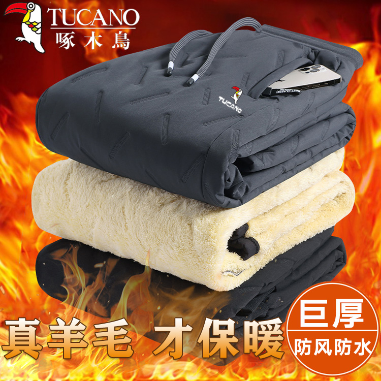 Woodpecker lamb cashmere cotton pants male winter plus suede thickened loose large code casual pants windproof and warm anti-cold pants-Taobao