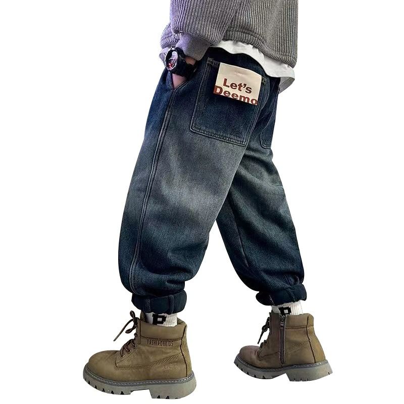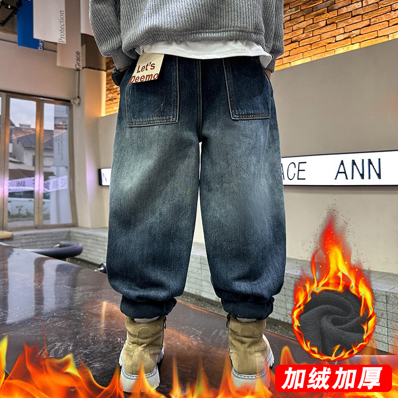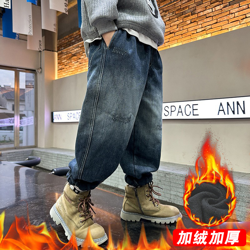 Boy Clothing Boy Autumn Winter Plus Suede Jeans 2023 New CUHK Thickening Integrated Suede Warm Pants Sports Pants-Taobao