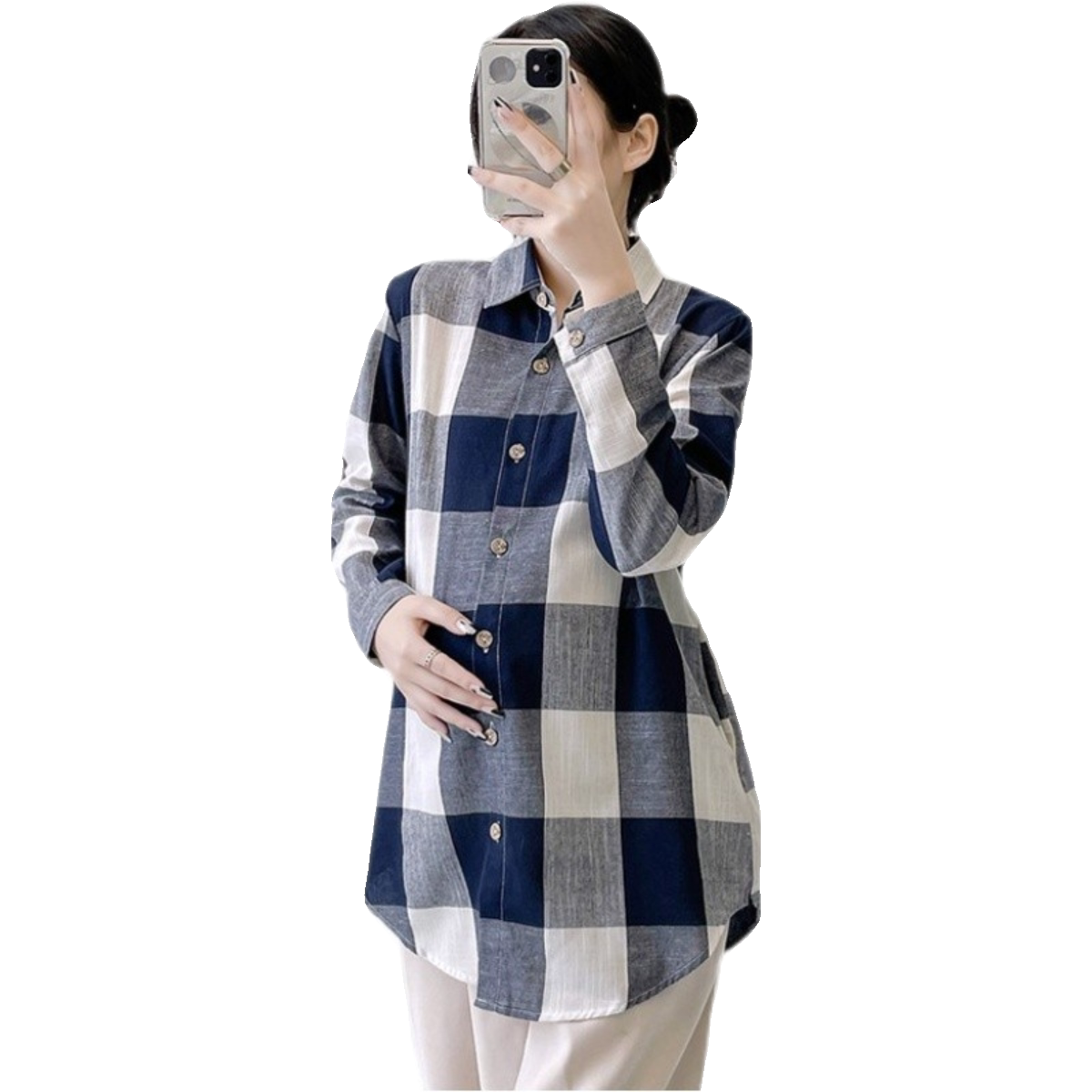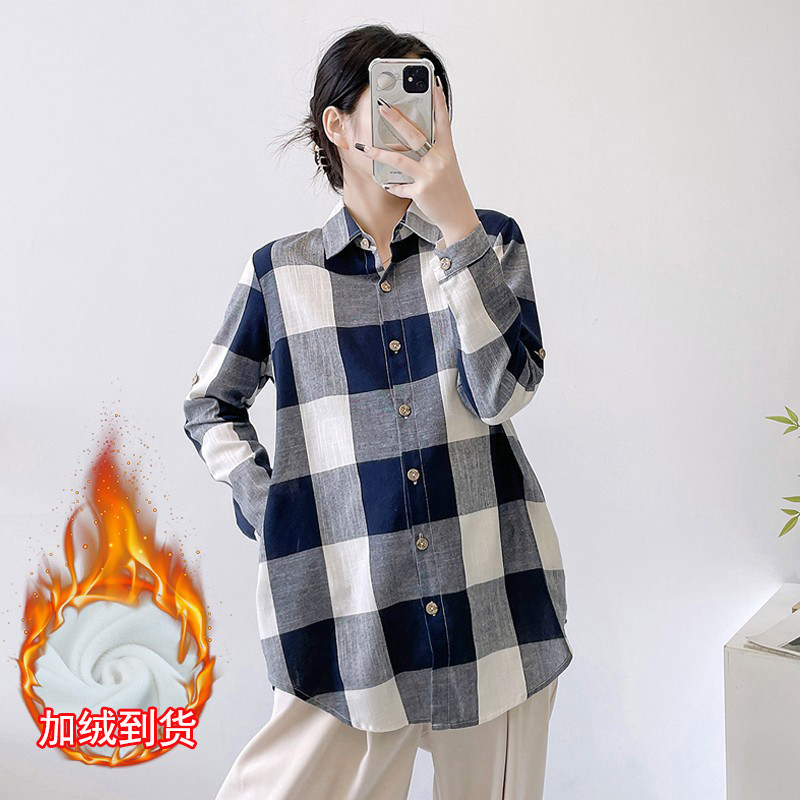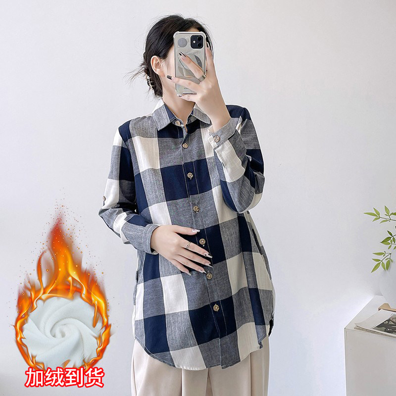Winter plus suede thickened pregnant woman shirt large plaid loose large code blouse blouse autumn winter Korean version gestation maternity dress undershirt-Taobao