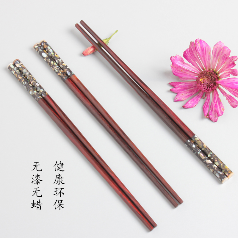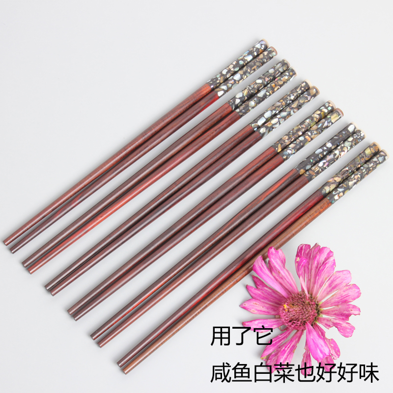 Shells inlaid with acid branches wood chopsticks for home high face value new solid wood Southeast Asian handmade red wood Chinese chopstick strips-Taobao