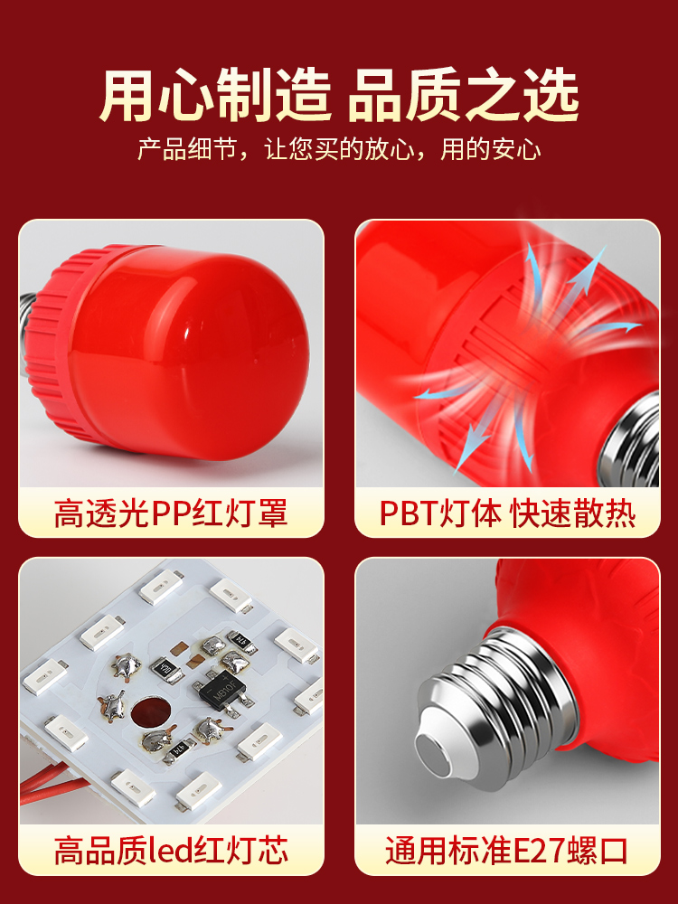 LED red light bulb festive red lantern god Changming atmosphere light e27 screw mount energy-saving household bulb lamp