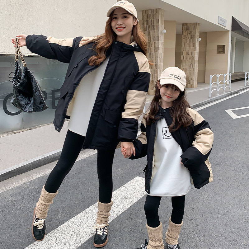 Winter pro-son fitted mother and son 2023 new Chaoyang gas mother woman dress black cotton clothes high-end even cap parent-child down jacket-Taobao
