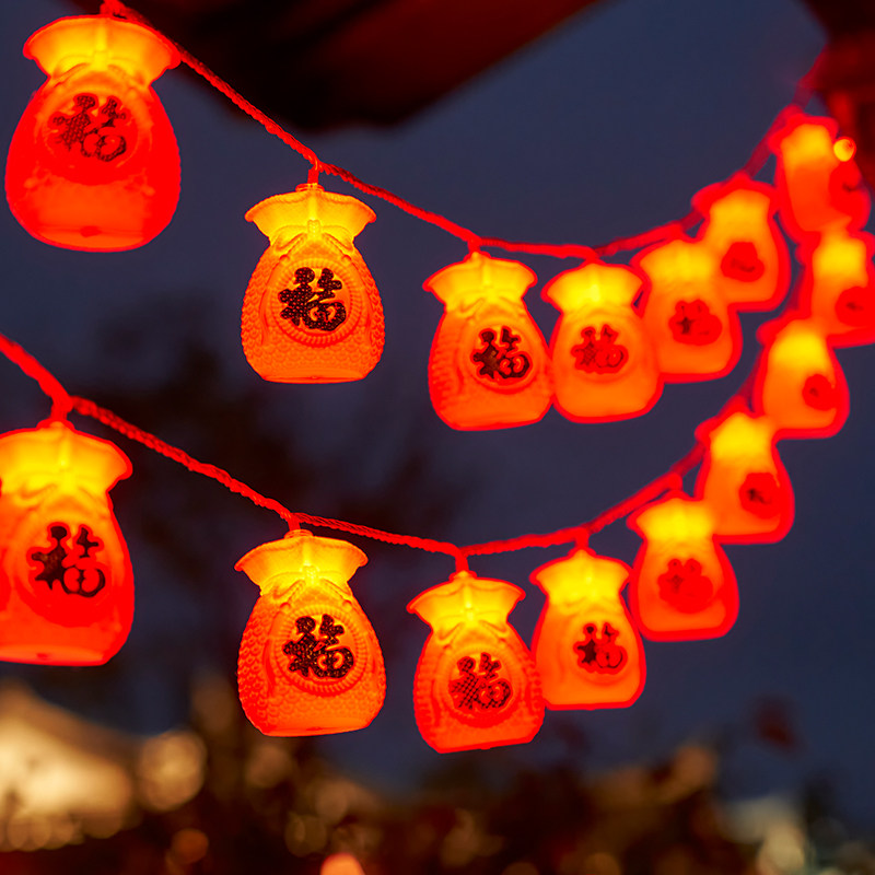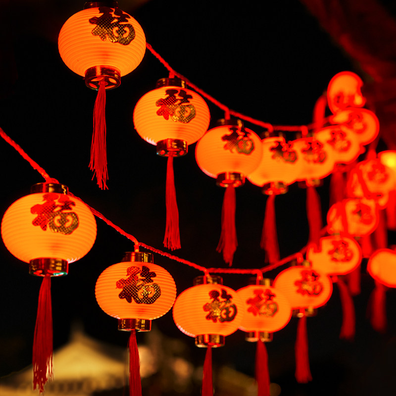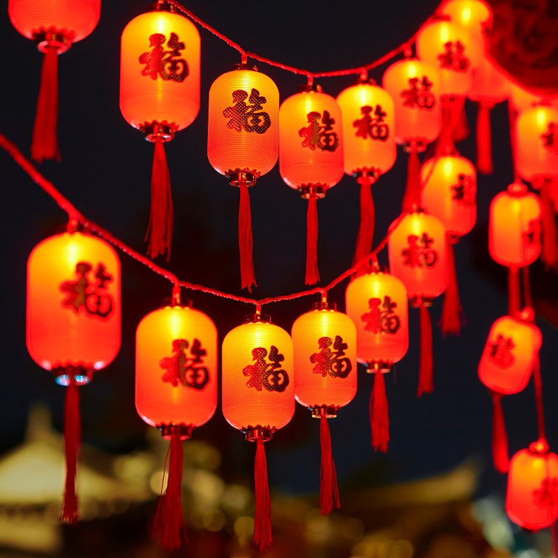 New Year's Spring Festival Home Chinese New Year Fog bags Fufu characters Red lantern decorations arranged hanging lanterns Colorful Lights lantern Lanterns Atmosphere Lights-Taobao