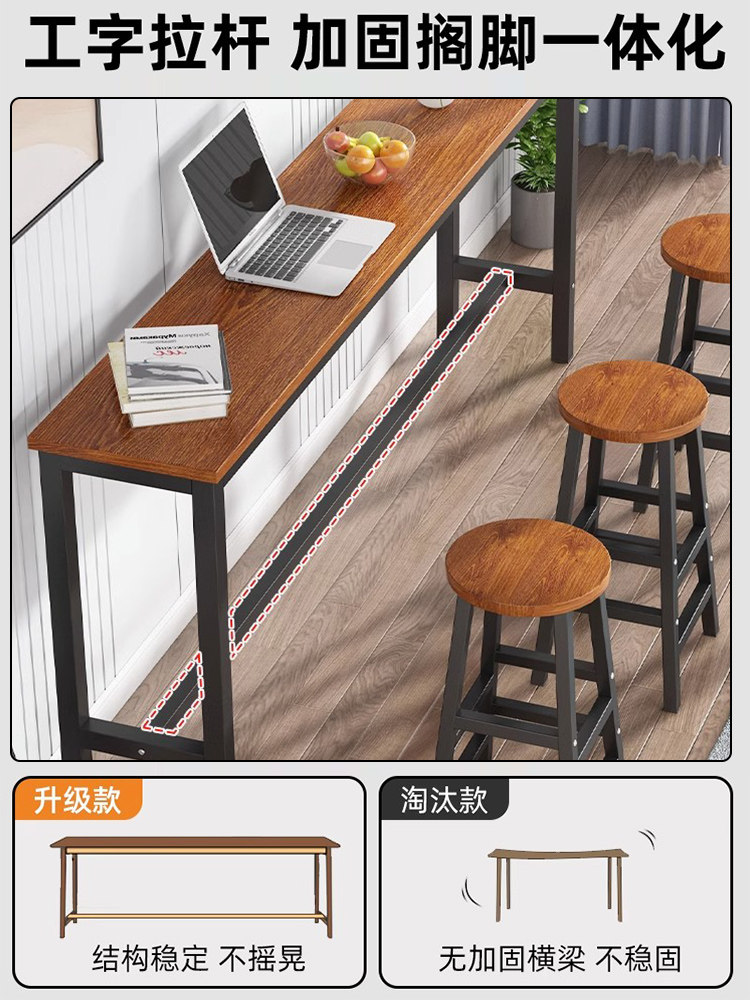 Bar desk Easy by wall Commercial narrow table Home Balcony Strip Table Casual Milk Tea Shop High Foot Chairs Combo-Taobao