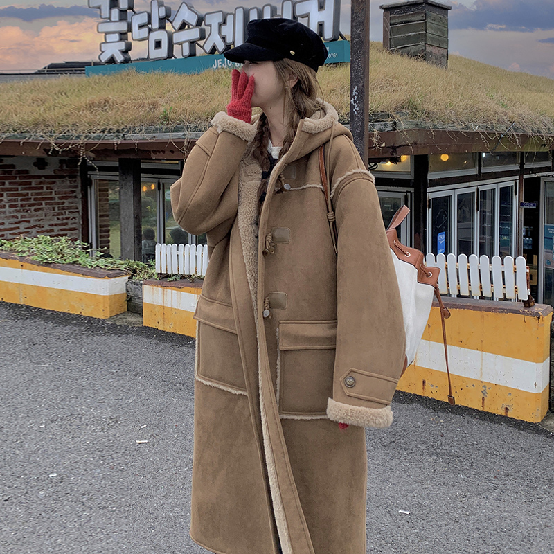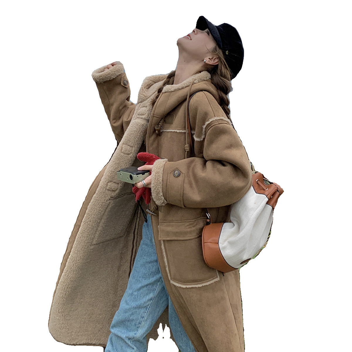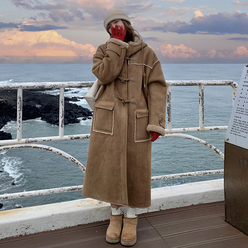 Fur-integrated lamb wool buffalo horn buckle large coat autumn winter advanced sensation 2023 new mid-length Korean cotton clot jacket-Taobao