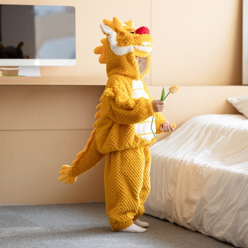 Yellow red gold dragon one-piece dress Chinese dragon one-piece suit yellow suit without velvet red suit without velvet
