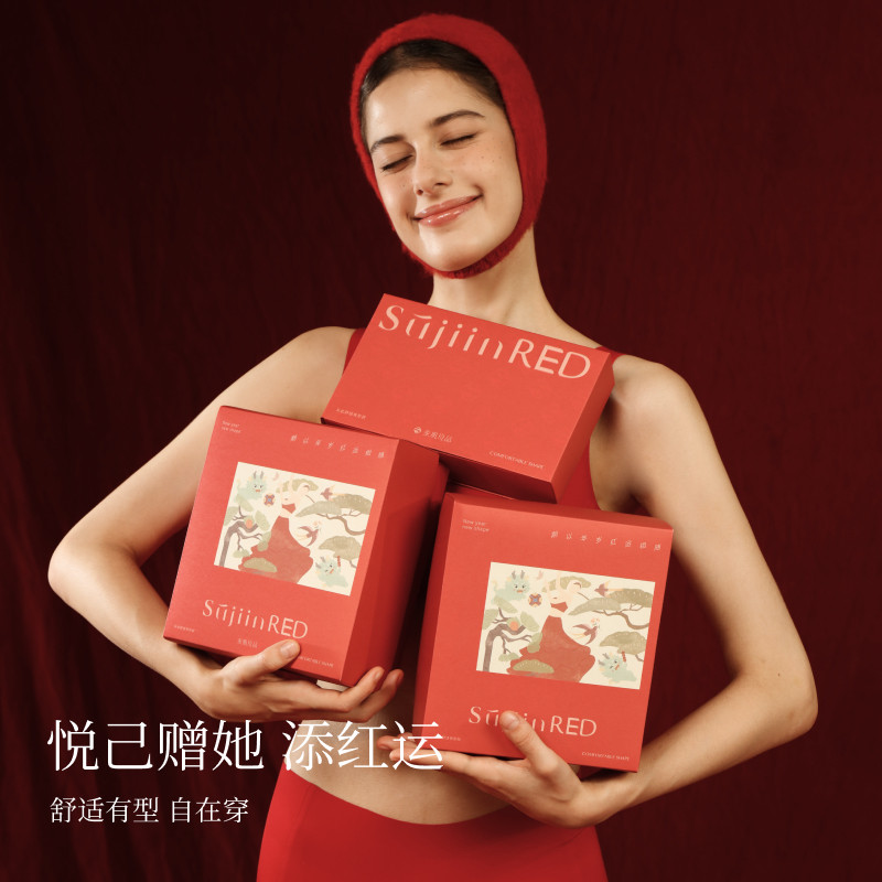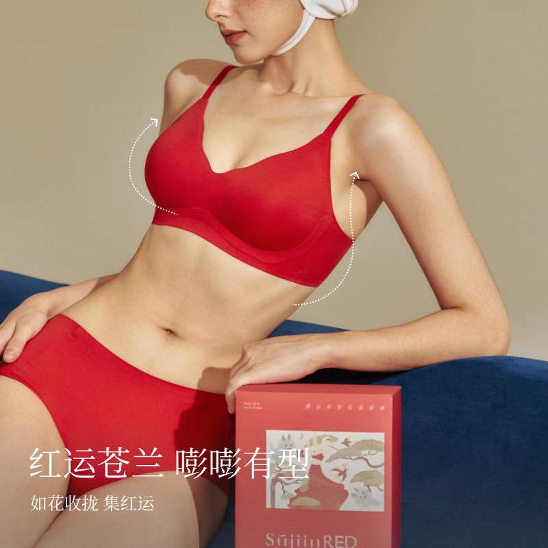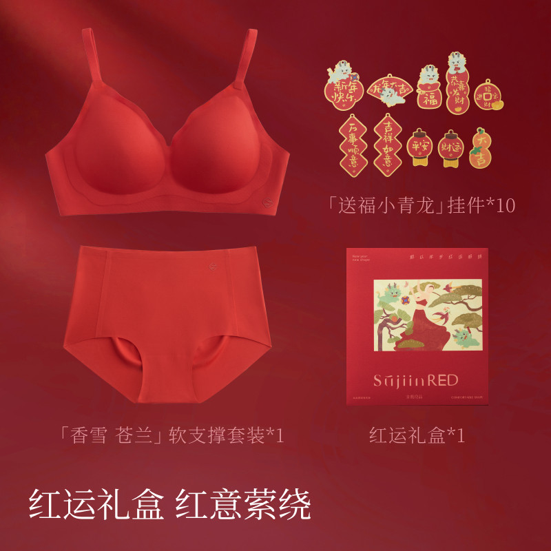 Vegetarian myocarol's life year red gift box 2024 new dragon year small breasts with large unmarked underwear suit women-Taobao